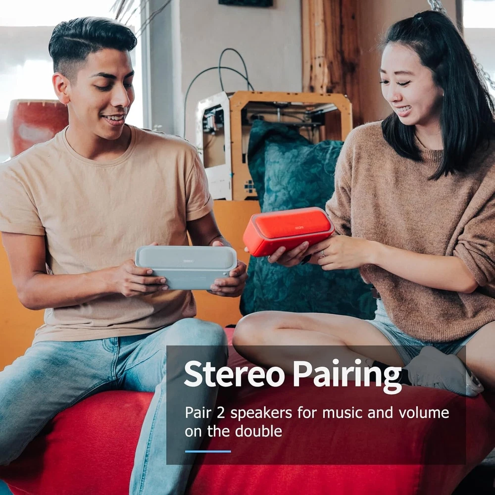 About this item Powerful Stereo Sound: Two full-range drivers and dual passive radiators produce 20W stereo sound with enhanced bass, tight mids and crystal clear highs without distortion at any volume. Active Extra Bass: Get more bass and volume louder by single pressing the extra bass button. Enjoy the big punch beat filling each corner of your room with this bass Bluetooth speaker. Wireless Stereo Pairing: Bring a bolder sound together for a bigger party. Connect two SoundBox Pro wireless speakers via a single device for immersive stereo sound and double the volume. Beat-Driven Light Show: Lit up the dynamic light effects for blazing party vibes. The wonderful light reacts and phases in time with the beat, including six colors and three illumination patterns to choose from. IPX6 Waterproof: Let the DOSS Soundbox Pro waterproof Bluetooth speaker party by the poolside, at the beach, at the park, at camping, and more. With IPX6 waterproof, the speaker can resist water splash, spray, and rain. But don't soak it in water directly. Bluetooth 5.0: With the Bluetooth 5.0 technology, this bluetooth speaker compatible most bluetooth devices and connect more reliable and faster, take your seamless music to the living room, backyard, office, or anywhere.
