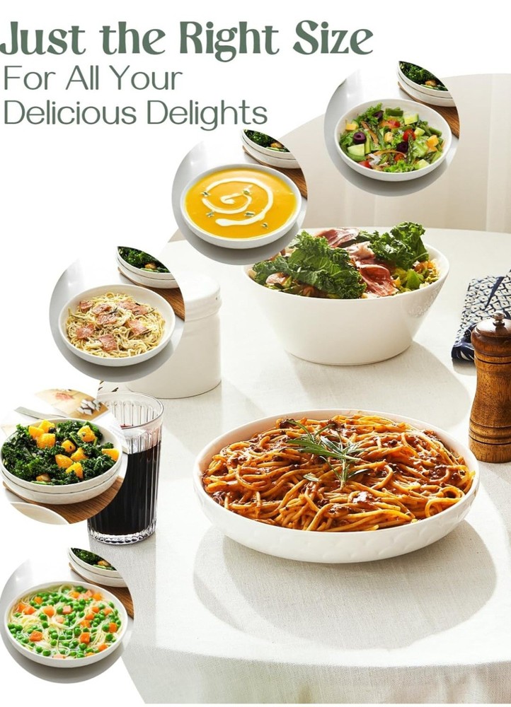 DOWAN Pasta Bowls, 54 oz Large Salad Serving Bowls, 10'' Plates Bowls Set of 4, White Ceramic Soup Bowls for Kitchen Meal Prep, Shallow Dishes Dinner Bowl Microwave Dishwasher Safe #15.11.25