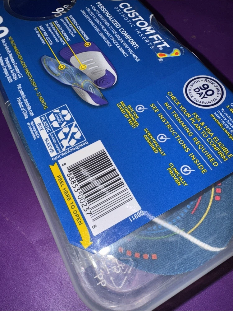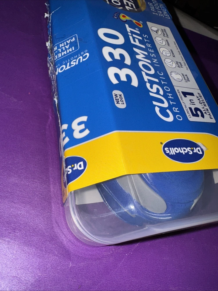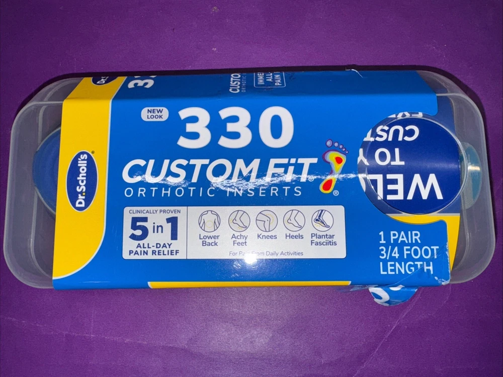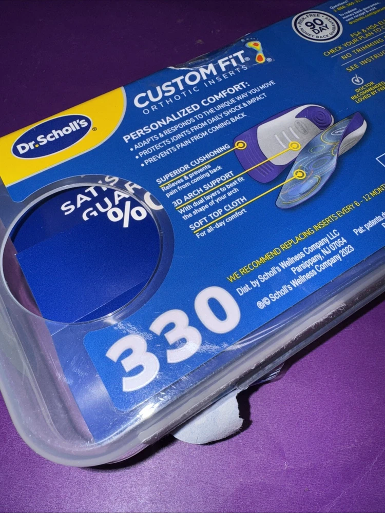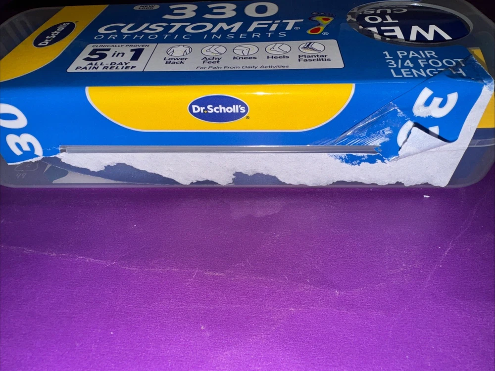 DR. SCHOLLS CUSTOM FIT ORTHOTIC INSERTS 5-IN-1 PAIN RELIEF 3D ARCH SUPPORT CF330. Sealed is open but the lock secured still on it.