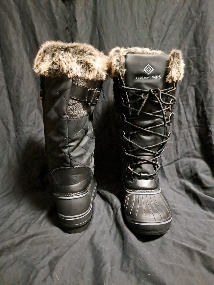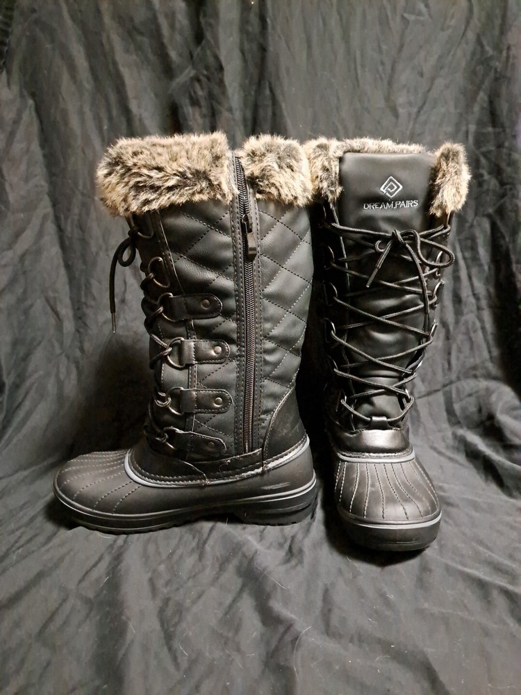 DREAM PAIRS Women's BLACK Warm Faux Fur Lined Mid Calf Winter Snow Boots Size 5 See photos for condition, worn once. The person needed a 5.5 or 6, so these were to tight for them