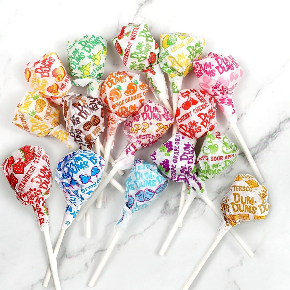 DUM DUMS Original Mix Lollipops, 1 lb Bag (60 Pieces Approx.), 1 Pounds Product Details Package Dimensions : 8.23 x 7.48 x 2.17 inches; 1 Pounds Units : 16.0 Ounce Flavor: Assorted Fruit Flavors Brand: The Hampton Popcorn Company Item Weight: 1 Pounds Allergen Information: Soy, Milk, Wheat, Eggs, Peanuts Package Information: Bag Indulge in the timeless delight of our Dum Dums Original Mix! Unwrap the nostalgia with this assortment of up to 16 individually wrapped lollipops, featuring our beloved classic flavors. From fruity delights to irresistible sweetness, this collection promises to please every craving. Savor the essence of our timeless and beloved Dum Dums flavors! This bulk candy bag boasts up to 16 individually wrapped lollipops, offering a delightful assortment of classic Dum Dums pops ideal for Easter, Valentine's Day, Halloween, Christmas, and children's birthday parties alike! 1lb Bulk Bag of delicious DUM DUMS (60 Pieces Approx.) featuring 16 flavors: Sour Apple, Lemon-Lime, Orange, Peach-Mango, Grape, Blue Raspberry, Cream Soda, Watermelon, Strawberry, Pineapple, Cherry, Butterscotch, Bubble Gum, Cotton Candy, Root Beer & Mystery Pop! PLEASE NOTE: Variety and quantity of each flavor will vary from bag to bag. Since 2003, The Hampton Popcorn & Candy Company has been delighting taste buds with a delectable assortment of popcorn and candy treats, perfect for every occasion.