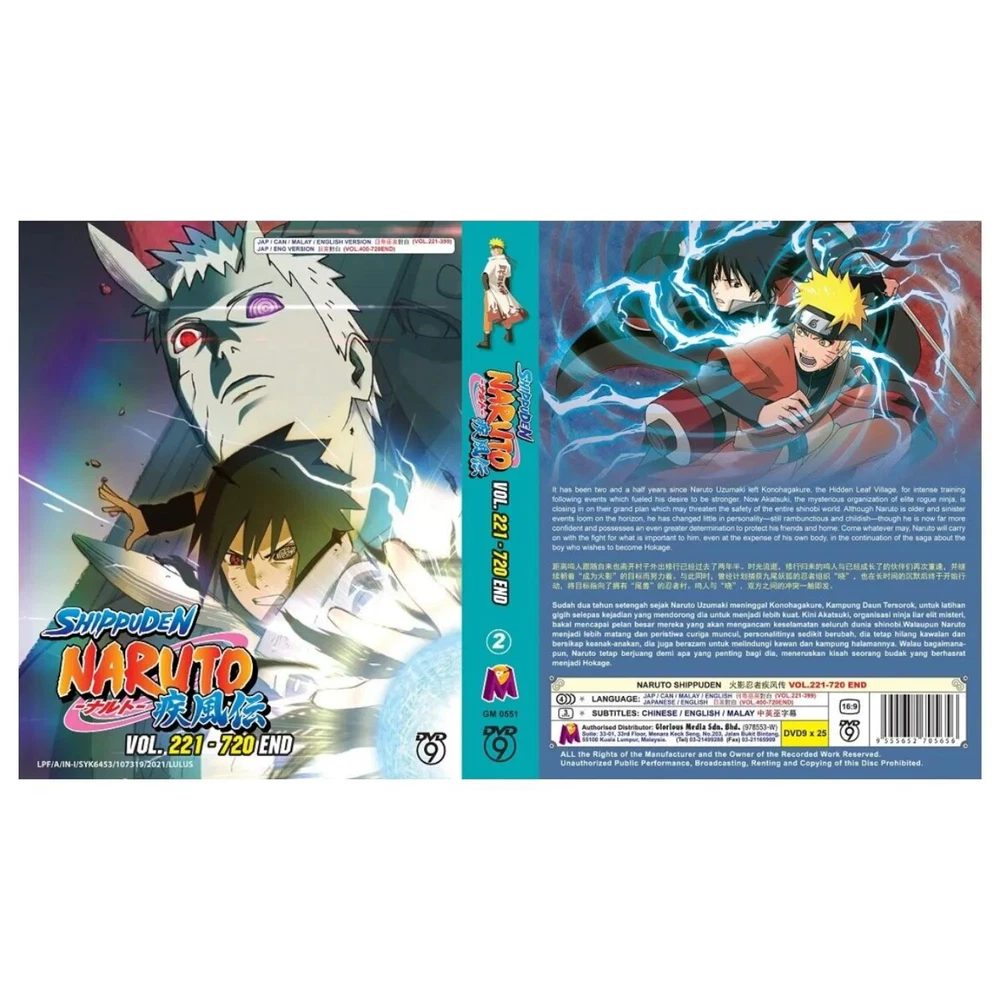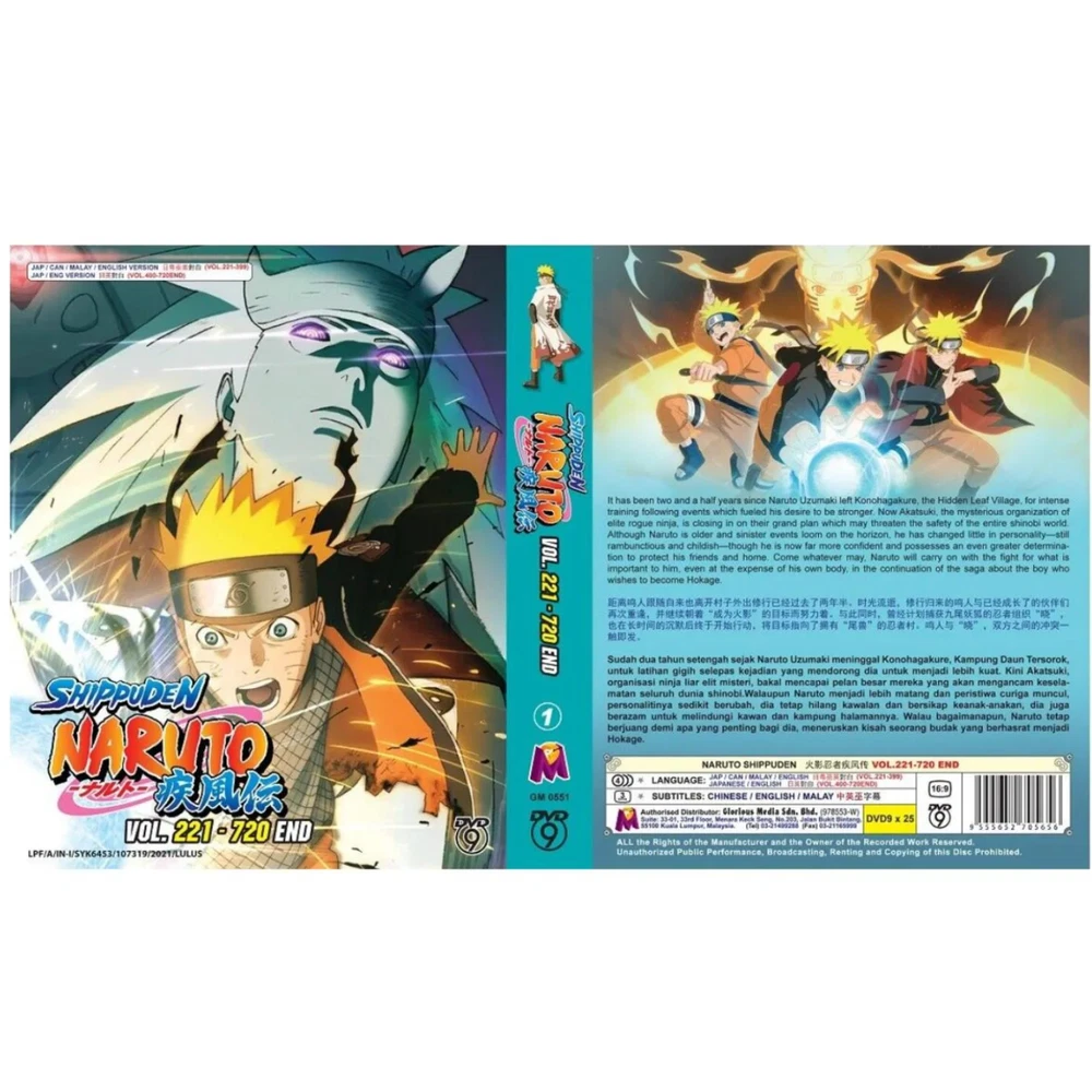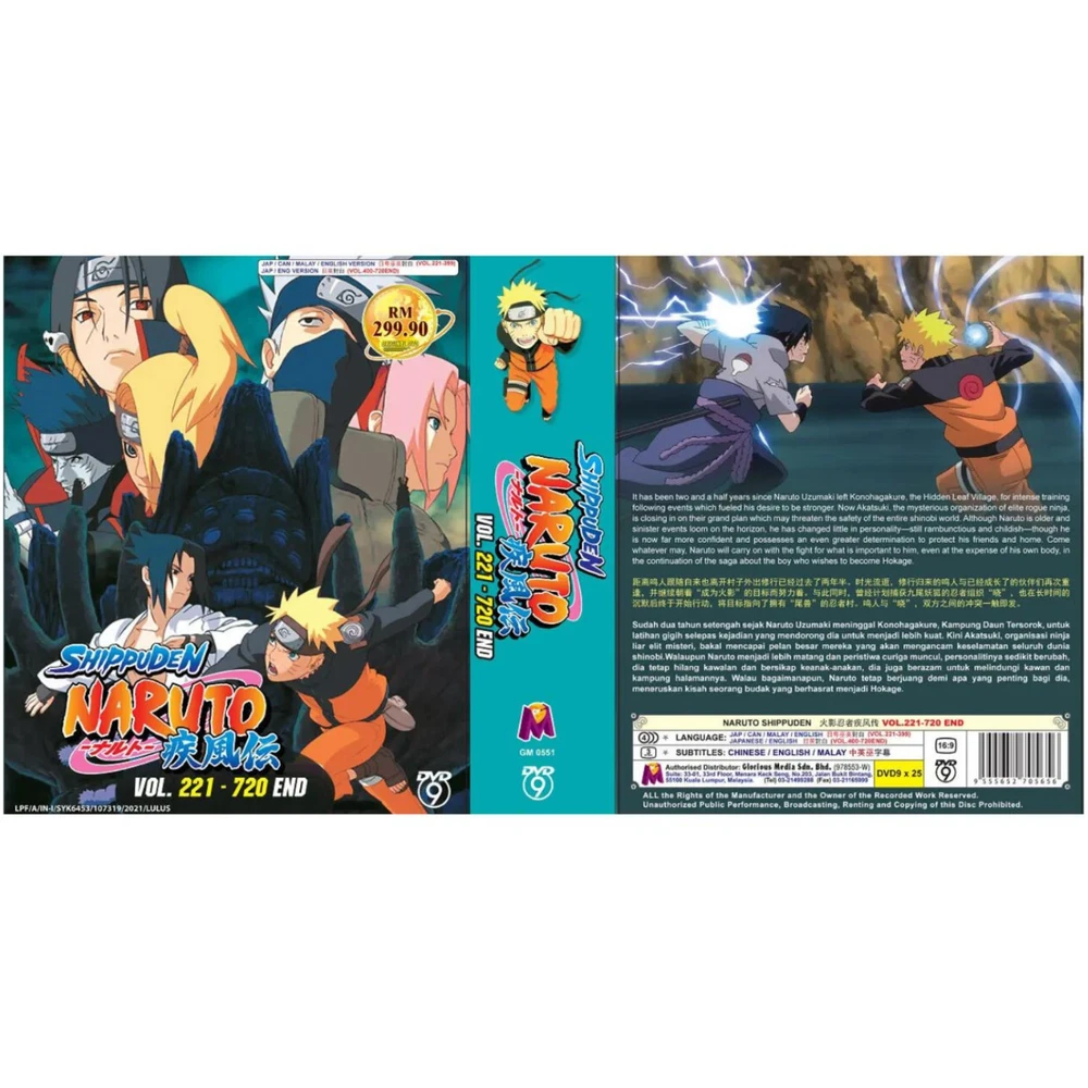 DVD Anime Naruto Shippuden Complete TV Series Vol.221-720 END ~ English Dubbed All Region Synopsis: It has been two and a half years since Naruto Uzumaki left Konohagakure, the Hidden Leaf Village, for intense training following events which fueled his desire to be stronger. Now Akatsuki, the mysterious organization of elite rogue ninja, is closing in on their grand plan which may threaten the safety of the entire shinobi world. Although Naruto is older and sinister events loom on the horizon, he has changed little in personality—still rambunctious and childish—though he is now far more confident and possesses an even greater determination to protect his friends and home. Come whatever may, Naruto will carry on with the fight for what is important to him, even at the expense of his own body, in the continuation of the saga about the boy who wishes to become Hokage. Features and further details Title : Naruto Shippuden TV Series Vol.221-720 End -ナルト- 疾風伝 Description: Condition : Brand NEW Audio : Japanese / English / Cantonese Subtitle : Chinese / English Region Code : All Region No. Of Disc & Format : 25 Disc DVD Format : DVD / NTSC & All Region Code (16:9) Publisher : Malaysia Original Hologram Sticker weight : 725g Genres: Action, Adventure, Fantasy Theme: Martial Arts Contact us We can be contacted at any time through eBay messages if you have any questions, comments or product requests. We will respond to you within 24 hours and do our best to help you out! We encourage our customers to contact us with any questions or concerns! We'd like to be sure you are completely satisfied with your purchase. Payment We accept payment via eBay - managed payment Shipping We are using standard international shipping. Handling time is 1-3 business working days. Your goods will be shipped with valid tracking number. All products is packed , layered with bubble wrap to reduce damages during shipment delivery. Estimated delivery is between 11 to 23 business working days. We also provide express shipping as an option. Estimated delivery is between 5 to 8 business days. **Rest assured we will ensure your package arrives as soon as possible. However, the delivery may be delayed due to some unforeseen circumstances which is out of our control, such as bad weather, high postal traffic and the performance of shipping companies. Return If you have any problem with the order, do contact us via eBay message, we will be glad to assist you and resolve your problems as soon as possible. Items can be returned within 30 days in good condition. Note: Import duties, taxes and additional charges are not included in item price or shipping charges. Please be aware these custom import duties and taxes are buyer's responsibility. Free eBay listing template designed by © dewiso.com .
