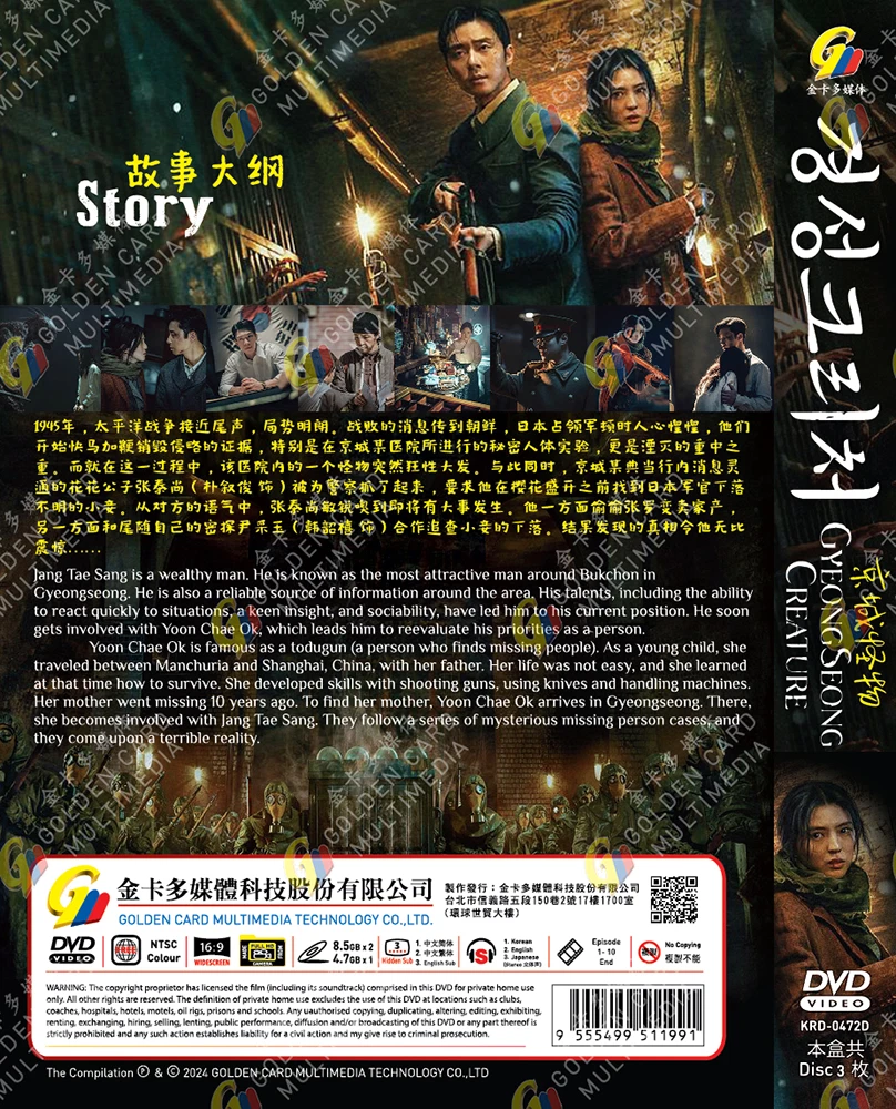 GYEONGSEONG CREATURE - COMPLETE TV SERIES KOREAN DRAMA Format : All Region Condition : NEW, Original & Licensed Item Number Of Disc : 3 Number Of Episode : 1 - 10 End Language : Korean Subtitle : Chinese / English Shipping & Handling : - Free Register For Track Your Shipment Delivery 14 to 18 Days Without Sat & Sun Working Days. - We Provide Worldwide Shipping. - All Parcel Will Be Dispatched Out From Malaysia Within 1 to 2 Working Days After Payment Has Cleared. - All Items Will Be Bubble Wrapped For Better Protection. Payment Details : - We Accept PAYPAL Only. - IMMEDIATE PAYMENT is Required. Thank You. Return : - 14 Days No Question Ask Return. Buyer Pay The Return Postage. Contact us : - Please E-Mail Me If You Have Other Questions. Feedback : -Should Any Problems Arise, Please E-Mail Let us Know & We Will Do Our To Correct Any Problems. Thanks For Shopping Have A Nice Days