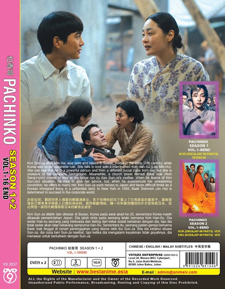 TITLE : PACHINKO 柏青哥 SEASON 1 - 2 DESCRIPTION No of Disc : 2 No of Episode : 1 - 16 End Language : Korean Subtitle : English / Chinese Format : DVD / NTSC & All Region Code (16.9) Shipping Time Tracking Number Provided To Track Your Shipment Delivery 10 to 18 Days Without Sat & Sun Working Days Payment Paypal Accepted Contact US Any Problems Or Enquiries Please E-Mail US Thanks Feedback Should Any Problem Arise, Please E-Mail To Let US Know & We Will Do Our Best To Rectify Any Problems Return Within 14 Days No Questions, Ask Return. Buyer Will Need Pay Return Postage WE SELLING ALL ORIGINAL PRODUCT AND SIRIM MALAYSIA APPROVE BY GOV DEPARTMENT Thanks For Shopping Have a Nice Days