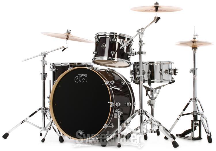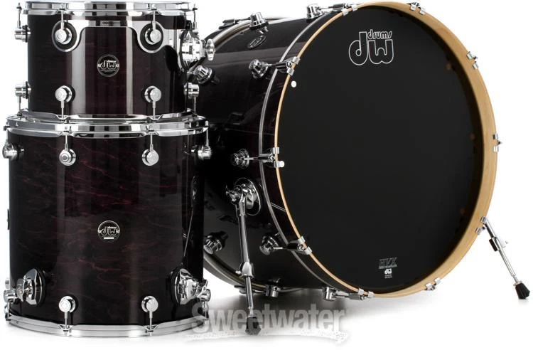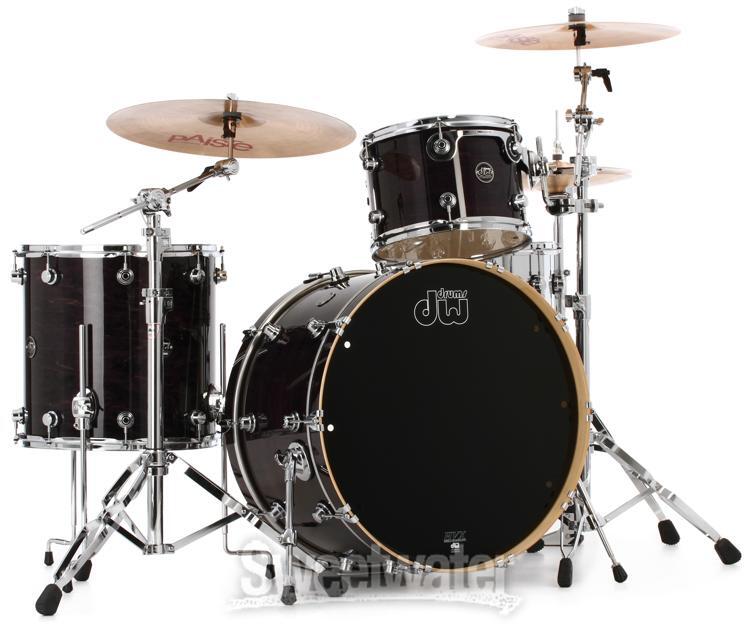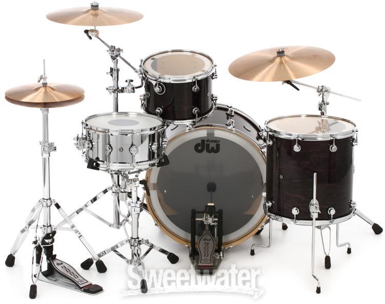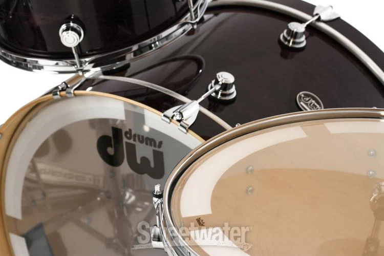 A Bona Fide, American-made DW The DW Performance Series' HVX maple shells are hand built in the same California plant, by the same skilled craftsmen, as DW's inimitable Collector's Series. Its hardware even offers many of the same tuning and performance advantages. Reduced Quarter Turret lugs and a range of specialty wrap, lacquer, and satin finishes give the Performance Series a heart and soul all its own.DW Performance Series vs DW Collector's Series Unlike the 100% custom Collector's Series, the DW Performance Series maximizes value by limiting configurable options. If you're in the market for an authentic American DW playing experience at a real-world price, look no further than the Performance Series.Specialty Performance finishes The DW Performance Series is available in several finish options. Choose hand-applied lacquer and satin stains for a contemporary look; or for something more classic, choose DW's durable FinishPly wraps, sourced from Delmar USA's UV-treated specialty Sweetwater is an Authorized DW Dealer Genuine New Item Sweetwater's 2-year warranty DW Performance Series 3-piece Shell Pack with 24 inch Bass Drum - Ebony Stain 3-piece Maple Shell Pack with 13" Tom, 16" Floor Tom, and 24" Bass Drum - Ebony Stain Lacquer A Bona Fide, American-made DW The DW Performance Series' HVX maple shells are hand built in the same California plant, by the same skilled craftsmen, as DW's inimitable Collector's Series. Its hardware even offers many of the same tuning and performance advantages. Reduced Quarter Turret lugs and a range of specialty wrap, lacquer, and satin finishes give the Performance Series a heart and soul all its own. DW Performance Series vs DW Collector's Series Unlike the 100% custom Collector's Series, the DW Performance Series maximizes value by limiting configurable options. If you're in the market for an authentic American DW playing experience at a real-world price, look no further than the Performance Series. Specialty Performance finishes The DW Performance Series is available in several finish options. Choose hand-applied lacquer and satin stains for a contemporary look; or for something more classic, choose DW's durable FinishPly wraps, sourced from Delmar USA's UV-treated specialty plastics. Your dream kit awaits As the nation's largest DW Performance Series dealer, Sweetwater stocks nearly every shell size and finish available in the line. Your dream kit is just a click or call away. HVX maple shells The Performance Series begins with DW's US-built, handcrafted HVX hard rock North American maple shells. The HVX grain orientation arranges wood plies horizontally, vertically, and diagonally for a deep and satisfying fundamental. Shells are baked in pressure molds (2600 PSI at 200°F) then immediately Cool Tempered to crystallize the glue, maximizing strength, roundness, and resonance. Toms come crowned with pinpoint 45° back-cut bearing edges to enhance attack and increase head response; the kick drum features 60° edges for richer depth and effortless playability. Proprietary DW hardware Unique to the Performance Series are DW's reduced-size Quarter Turret lugs. These offer a decidedly sleeker, more modern appearance that many DW artists prefer. A closer look reveals much of the same hardware found throughout the DW's Collector's Series: Graduated Counter Hoops , weighted per each shell size, unlock a dynamic balance of attack and sustain Washer-less STM Suspension Tom Mounts float toms securely without choking tone Fine-threaded True-Pitch tension rods maximize tuning accuracy Shell pack shown in Natural Lacquer finish Pictured: Natural Lacquer finish DW Performance Series Shell Pack Features: Handcrafted and finished in Oxnard, California Quarter Turret lugs are sleek and recognizable HVX maple shells deliver a deep, powerful fundamental Heat forming/Cool Tempering maximizes shell strength, roundness, and resonance 45° and 60° bearing edges promise modern cut and sustain Graduated flanged hoops are tailored to each shell diameter STM tom mounts suspend shells securely without choking tone 21" floor tom legs accommodate a range of playing heights Fine-threaded True-Pitch tension rods enhance tuning accuracy Specification Detail Finish Ebony Stain Lacquer Configuration Shell Pack without Snare Drum Number of Drums 3 Mounted Toms (Depth x Diameter) 9" x 13" Floor Toms (Depth x Diameter) 16" x 16" Bass Drums (Depth x Diameter) 14" x 24" Shell Material North American Maple, HVX RETURN INFORMATION We want you to be completely happy with your purchase from Sweetwater. If you are not satisfied with your product, you may return it for a refund of the purchase price within 30 days. If your purchase was eligible for Free Shipping, the shipping cost will be deducted from your credit or refund. Returns must be in the complete and original packaging with all accessories and complete documentation (Owner's Manual, warranty card, quick start guides, etc.), show no signs of wear or use, and include a Return Authorization number or be subject to a restocking fee.