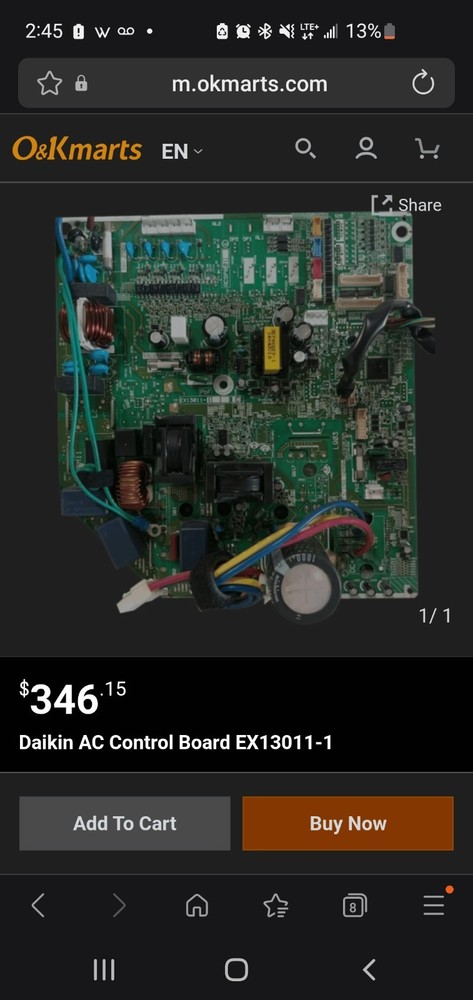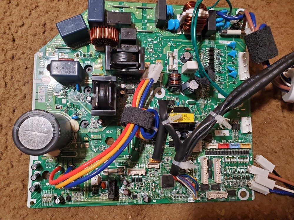 LIKE NEW! FREE SHIPPING! Daikin air conditioner control board or printed circuit assembly (PCB). It handles smart functions, temperature control, and system diagnostics. The board processes signals and regulates power distribution within an HVAC system. It is designed for Daikin outdoor units. Specific part numbers associated with similar boards include EX13025-17 and 3PCB3972-11.