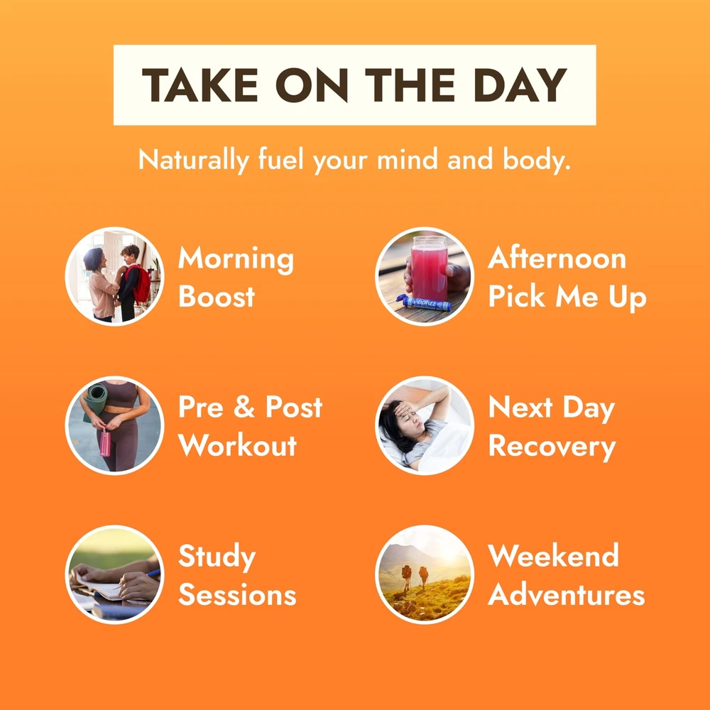 is a sugar-free energy powder packet with natural ingredients and great flavor, making it a healthy alternative to sugary sports drinks, coffee, soda, and more. Each packet provides 4-6 hours of sustained energy with 100mg of natural caffeine and is packed with essential daily nutrients like B12, B6, Vitamin C, Calcium, Folate, Niacin, and Antioxidants. To Use: Fill 16-20 fl oz of cold water into a bottle, pour in one tube of Energy Powder, shake & enjoy! Drink 15-30 minutes prior to exercise for increased performance. 3-in-1 Daily Functional Beverage – Energy Drink Powder combines natural ingredients to deliver sustained energy, liquid electrolytes, and immunity support in one sugar-free, low-carb, and low-calorie daily bubbly beverage. Refreshing Lemon Iced Tea Flavor – Experience a perfect balance of refreshing lemon and smooth iced tea for a light and refreshing taste. Simply add powder to 16-20 ounces of water or other non-carbonated beverage, shake, and enjoy! Packed with Vitamins and Natural Electrolytes – Our comprehensive formula contains 100% of recommended daily vitamins in two tubes, including 500mg of Vitamin C, 950mg of Potassium, 2500mcg of B12, and 105mg of Magnesium. Zero sugar, no artificial flavors or colors, no preservatives, and gluten free. Convenient and Portable for On-The-Go – From replacing your morning coffee to providing essential post-workout hydration and nutrients, ’s single-serving hydration sticks are great for traveling and busy schedules. 100% Happiness Guarantee – We pride ourselves on using healthy, natural ingredients to deliver high-quality taste, nutrition, energy, and hydration. Whether you're an athlete pushing the boundaries of physical performance, a professional striving for success, or a student pursuing academic excellence, is your trusted companion on the journey to greatness.