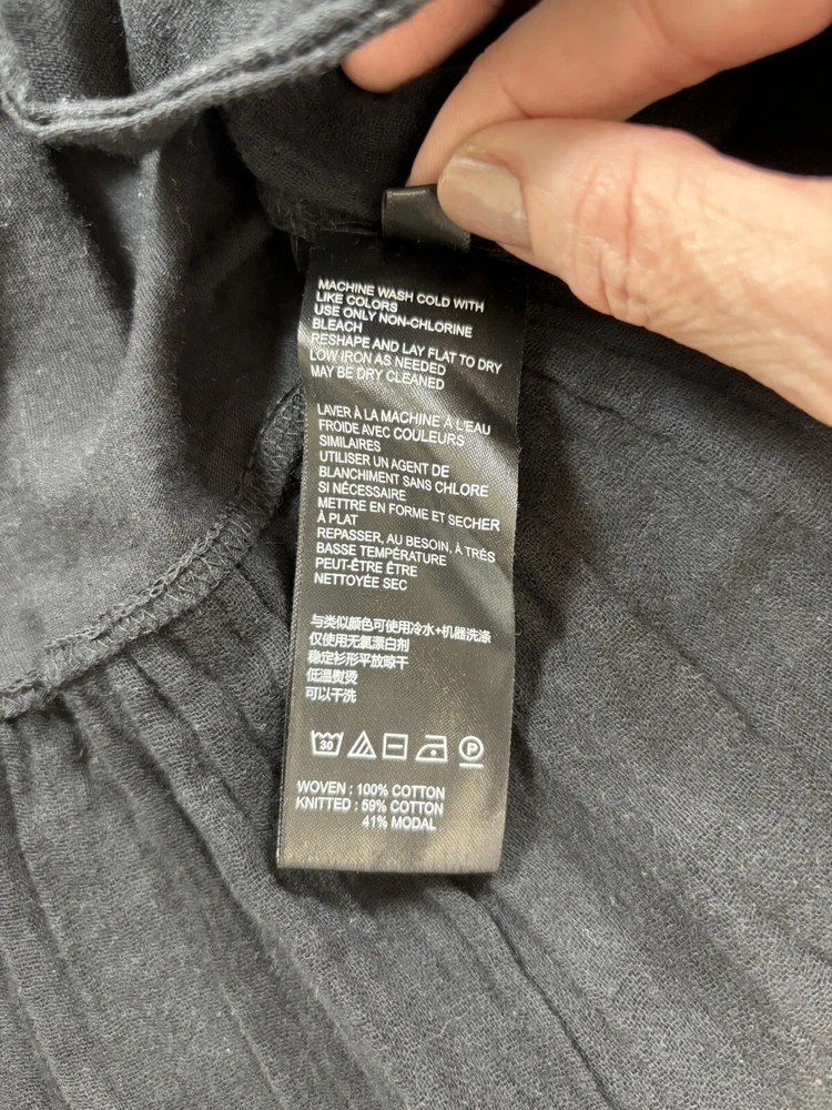 Daily Practice Anthropologie Dress Black Small New Tiered Ruffled Flutter Sleeve Low Back Crinkled fabric ruffles mixed with knit cotton Fabric Content - Woven: 100% cotton, Knitted: 59% cotton, 41% modal Care Instructions - Machine wash, flat dry See photos for condition - brand new, tags still attached Size Small - See photos for measurements G3