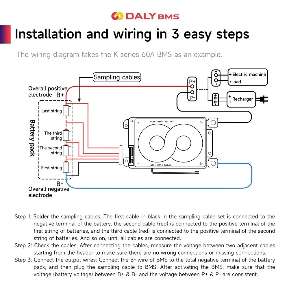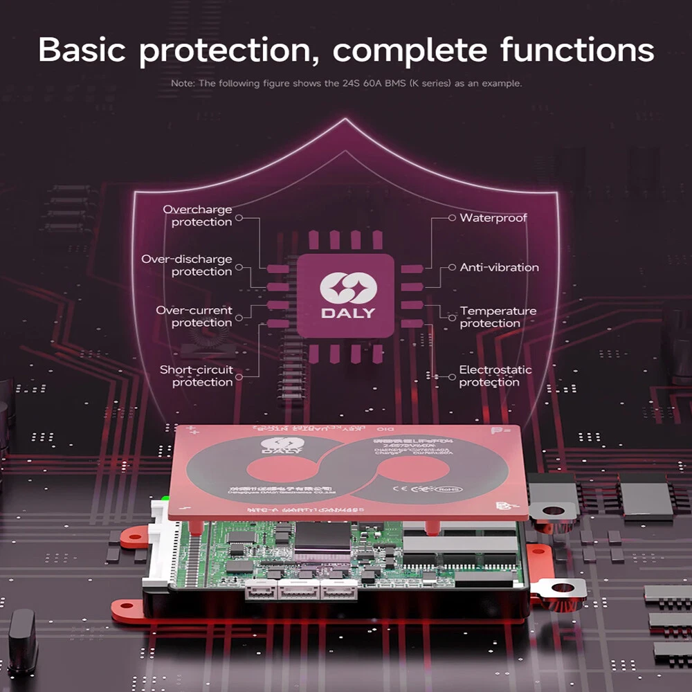 SAFE & SECURE SHOPPING 100% SATISFACTION GUARANTEED FAST SHIPPING Daly 4S 12V/8S 24V/13S 16S 48V/20S 72V Li-ion LiFePo4 Smart BMS+Wifi Module lot Product Description Product Name: DALY K/M/S-Shaped SMART BMS Colour: Red Size: as shown in the picture Applicable battery series and voltage: 4S 12V, 8S 24V, 13S 48V, 16S 48V, 20S 72V Applicable battery type: 3.2V Lifepo4 Battery, 3.7V Li-ionBattery Discharge current: 40A, 60A, 100A, 150A, 200A, 250A, 300A, 400A, 500A Discharge Protection Current: 60A, 90A, 150A, 225A, 300A, 375A, 400A, 600A, 750A Charging current: 40A, 60A, 100A, 150A, 200A, 250A, 300A, 400A, 500A Charging overcurrent protection: 60A, 90A, 150A, 225A, 300A, 375A, 400A, 600A, 750A Passive equalisation: 100±30Ma Working temperature: -40℃-85℃ Package Included: 1*DALY K-shaped SMART BMS 1*manual 2*B- P- Link wire 1*Wifi Module 1*Cable Payment Shipping Returns Contact Us Payment Payment must be completed within 5 days. If you have any problems about payment, please contact us via ebay message. Shipping We only ship to confirmed ebay Order addresses. Please comfirm that your Order address is in line with your shipping address. Please kindly note that the combined shipping is not provided because the shipping fee is calculated by weight. Also, the each additional item means exactly the the same color and size. It takes about 7-15 working days to US; about 10-30 working days to other countries. Transit time may be a little delayed because of the bad weather and customs inspection. If you do not receive your item within 30 working days since payment finished, please contact us immediately for further assistance. Returns Items can be returned for exchange or refund within 30 days from the date you receive your merchandise. We are not responsible for any purchase after this 30-day period. Return shipping is the responsibility of buyer unless the return is a result of our mistake (i.e., your receive the wrong item). We will pay for shipping replacement back to you if an exchange is requested. Contact Us Customer satisfaction is very important to us and our feedback rating reflects this satisfaction. If you have any questions, Our customer service staffs welcome feel free to contact us by EBAY message box. We strive to answer all questions and resolve any problems as quickly as possible. Copyright © 2022 Tongtool On Dec 30, 2024 at 03:10:57 PST, seller added the following information:
