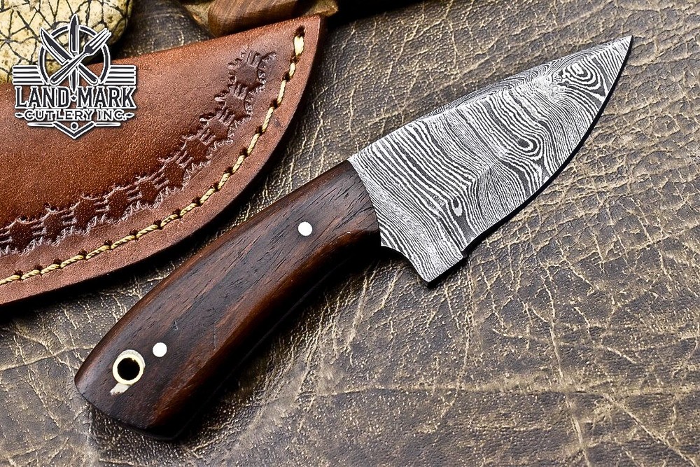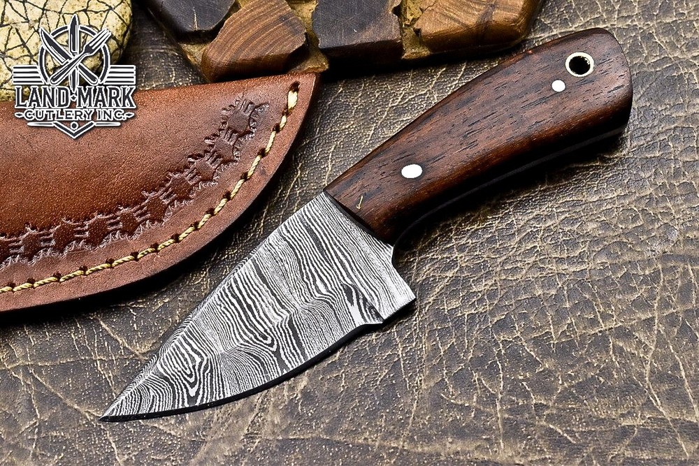 Custom Hand Made DAMASCUS STEEL HUNTING KNIFE WITH ROSE WOOD HANDLE We offer a shipping discount for More then one purchased . And discount will be apply on combine invoice, Discount will not apply on separate payment. ITEM DETAILS OVER ALL LENGTH 3.0 inches long (Approx) HANDLE LENGTH 1.5 inches long (Approx) BLADE LENGTH 1.5 inches long (Approx) BLADE HARDNESS 58-60 HRC Which Holds The Sharp Edge For Long Time. HANDLE ROSE WOOD COVER LEATHER SHEATH This Awesome custom made KNIFE has a nice hand forged with the combination of 4340 & 1080 steel. HOW OUR DAMASCUS IS MADE: All our Damascus is real and not just an acid etch. Damascus is a mixture of 1080HC and 4340 nickel carbon. You heat them up together and then fold the bar over and over to get the desired layers, ours are 396 layers. Then you burn the blade in acid, and it turns the nickel satin color and the high carbon turns blackish gray. This is how the layers are exposed to show the layers of the new steel created coined "Damascus". All Damascus is acid etched to show the layers. If you high polish the metal it will be shinny satin like all steels. Only after you burn the sides of the blade with acid do you see the layers of the two steels. Makes sense? After we make our knives we high polish the handles and put an edge on the blade. The high polishing buffs off the acid burned layer of the handle, and the blade edge is sharpened and the acid burned edge becomes satin. You can re-burn the tang of the blade near the handles and the edge of the blade and it will show the layers once more. All our knives are hand made, durable and unique ***** YOU WILL RECEIVED THE SAME KNIFE Qality Standards Our Damascus blades are made from high quality non-stainless steels which rival or exceed any Damascus blade made from the 10 series with 4340. Our Damascus combination has taken years to perfect and has been tested under a variety of application which will offer professional performance in categories of toughness, strength (lateral stress) and edge honing and holding ability. In a 5 spot Rockwell test our blades will average near or close to 58 which offers a perfect balances between its toughness and strength.Our blades due to carbon content need to be regularly treated with wax and/or 3 in 1 oil to maintain its superior quality. Questions if you have any question feel free to send us message we aim to answer all questions within 24 hours Feedback If you are not satisfied with our service please contact us before leaving any negative or natural feedback. We will resolve all issues as quickly as possible. Disclaimer We are not responsible for any injuries associated with the use of our tools. Our products are intended for legal use only by responsible buyers. Therefore, we will not sell our products to anyone under the age of 18. Before bidding please check your country laws as some countries Custom don't allow this. If your purchase is held by Custom Authorities in your country/State we will not be responsible for that and no refund will be issued Shipping We offer a 20% shipping discount for More then one purchased . And discount will be apply on combine invoice, Discount will not apply on separate payment We ship within 24 hours after receiving complete payment but this can be delayed due to week ends or Governments and Religious Festivals . . This is beyond our control and we apologize for this inconvenience. Precautions Our Tools are very sharp so open and use them very carefully We are not responsible for any injuries associated with the use of our tools Tips to Care knife 1. NEVER STORE YOUR KNIFE FOR LONG TIME IN LEATHER SHEATH. 2. LEATHER CAN ABSORB WATER, WHICH WILL RUST THE KNIFE. 3. ALWAYS CLEAN THE BLADE AFTER USING WITH OIL OR WAX