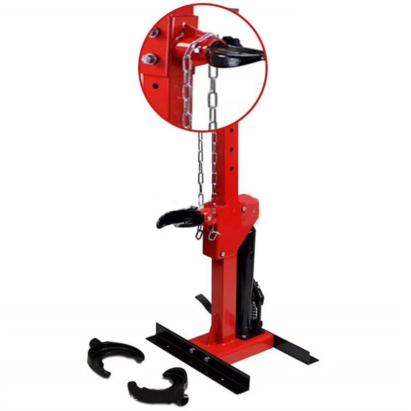 Damping Disassembly Machine Shock-Absorbing Spring Compressor Hydraulic Tools Item Description Nam e: shock absorbing spring dismantling machine Packing weight: 37KG Package size: 116*36*27CM Load capacity: 3T (6600 lb) Cylinder piston stroke: 320mm (12.6") Piston Diameter: 28mm (1.1") Minimum support rod shaft open: 65*51mm (2.6"*2") The maximum. Support rod shaft opening: 60*300mm (2.4"*11.8") Lifting height of jack: 495~820mm (19.5"*32.3") Height adjustment: It can be adjusted through 7 holes on the column Gross weight: 32 kg (70.5 lb)