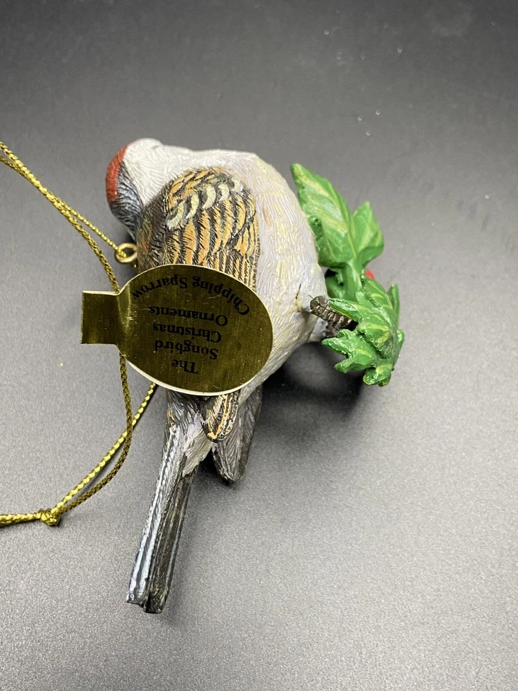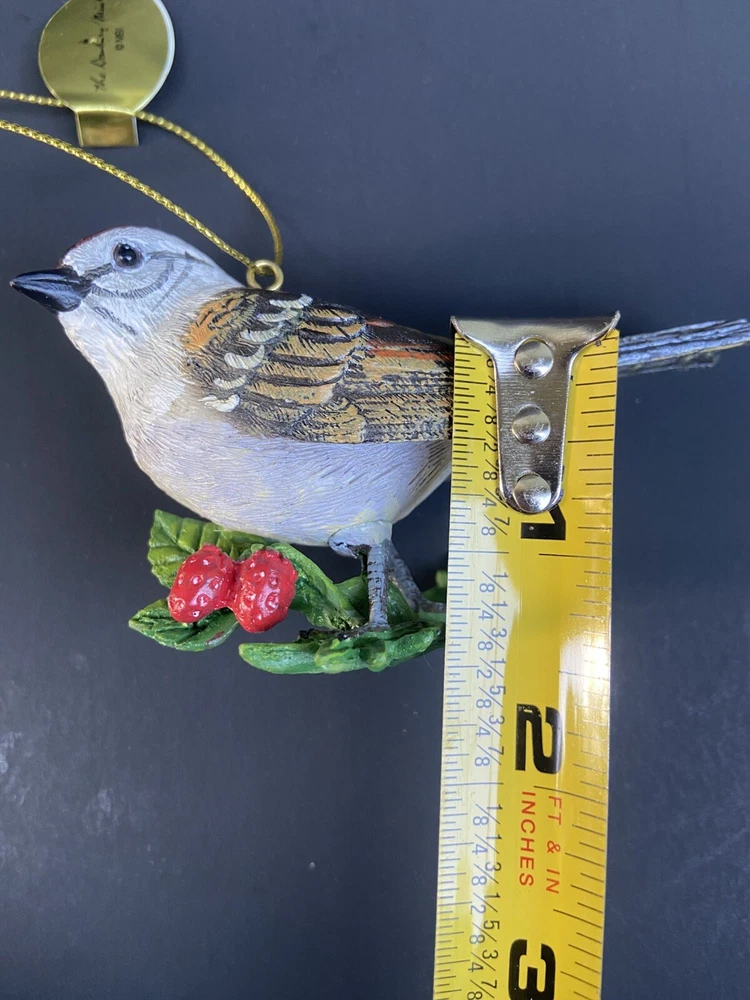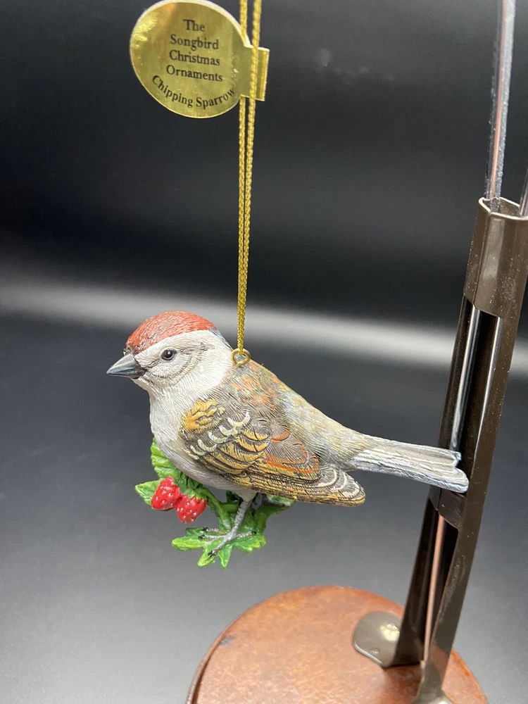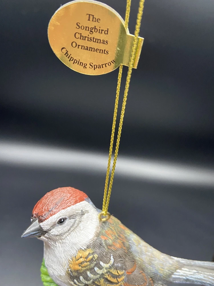 Shape: Bird Number of Items: 1 Occasion: Christmas Features: Hand Painted, Hanging MPN: N/a Collection: Ornaments Original/Licensed Reproduction: Original Brand: Danbury Mint Set Includes: Ornament Vintage: No Antique: No Subject: Chipping Sparrow Material: Resin Theme: Birds Color: Multicolor Type: Ornament Character: Chip