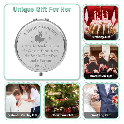Menu 1. We require immediate payment. 2. We currently accept payment via eBay managed payments only. 3. Once payment is cleared, we will dispatch your shipment within 1-3 business days. Please refer to the "Shipping" tab for more information regarding shipping speed to your destination. Dance Teachers Gifts for Women Portable Makeup Mirror Dancing Gift for Teacher Appreciation Gifts for Dance Teacher Folding Makeup Mirror Birthday Gifts Thanksgiving (Silver) Product description Dance Teacher Appreciation Gift for Her:A dance teacher helps her students find the song in their heart,the beat in their feet and a passion for life. If you are looking for a lovely gift to say thank you to a special Dance Teacher then this is just perfect! Dancer makeup mirror, ballerina Makeup mirror, dancing school Travel mirror. Gift for Dance Instructors:The perfect dance teacher makeup bag for your modern dance teacher, jazz dance teacher, dance teacher, dance coach, classical dance teacher, folk dance teacher, ballet teacher, Latin dance teacher, tap dance teacher. Gift for Dance Teacher Retirement:This meaningful mirror is a suitable gift to celebrate dance teacher's 30th, 40th, 50th, 60th, 65th, 70th, 75th, 80th, 90th and 100th anniversary milestone birthday parties or other important days and holidays like Teachers' Day, Teacher Appreciation Week, Graduation Day, Retirement, First Day of School, Thanksgiving, Christmas, etc. This is not only a gift, but also a thank you to the dance teacher. Portable Compact Makeup Mirror:Our mirrors have a protective film, you can tear off the film, the font and pictures will be seen more clearly.1 side is a standard mirror to help ensure that your lipstick, eyeliner and hair are in perfect condition and the other side is a magnifying mirror, an exceptionally clear image without distortion. Make sure the girl is getting the perfect look, and also allow her to check the tiniest details of your makeup.Ideal for daily use. Dance Teachers Fun Gifts :Folding mini pocket mirror packed in elegant velvet bag, and ready for gift giving. Mini size 2.6 inch/65mm.This compact mirror is light weight and very compact, perfect for multi-purses and travel. It easily fits into your pocket, purse, handbag, cosmetic bag, so you can put on makeup anytime, anyw. PLEASE MESSAGE US IF YOU HAVE ANY OTHER QUESTIONS, AND MANY THANKS FOR READING ALL OF THIS. Copyright ©#. All Rights Reserved.