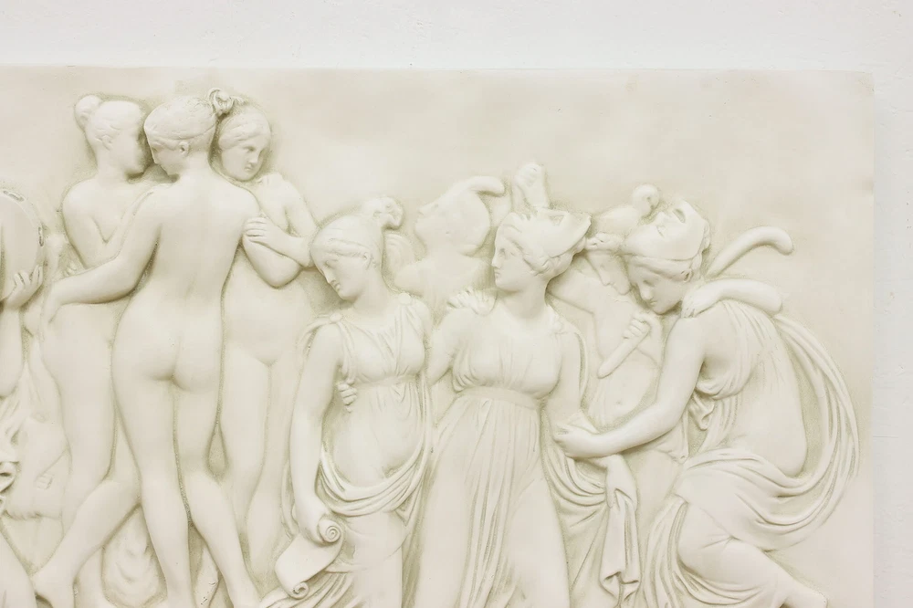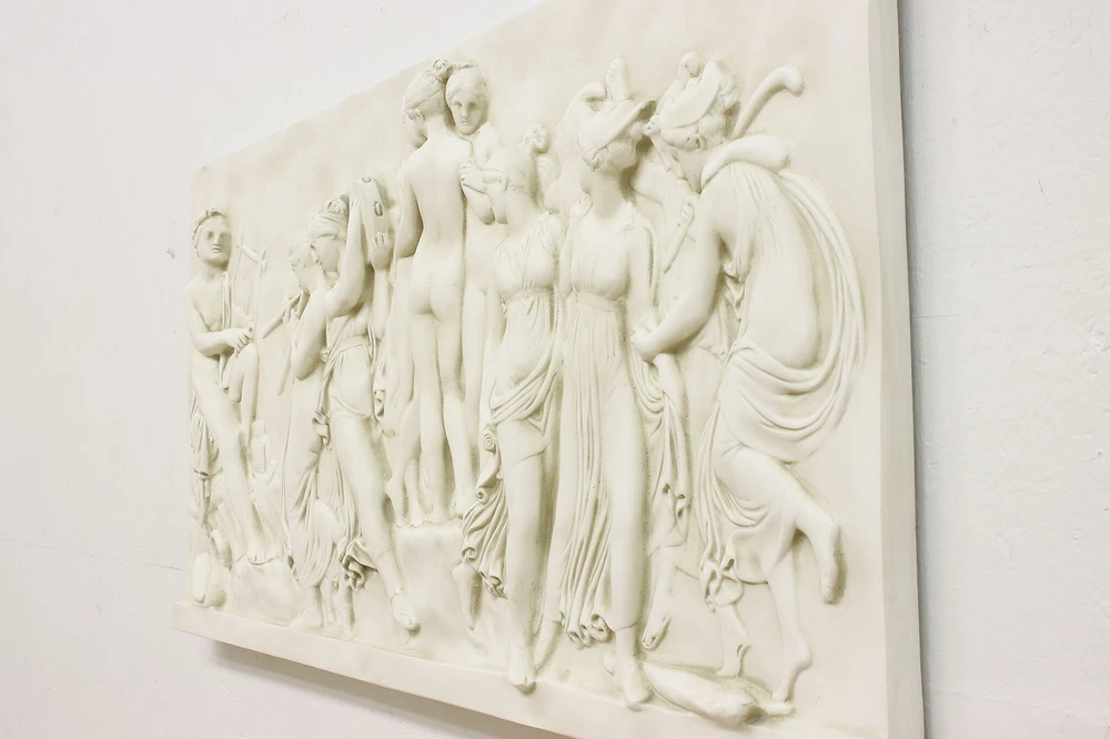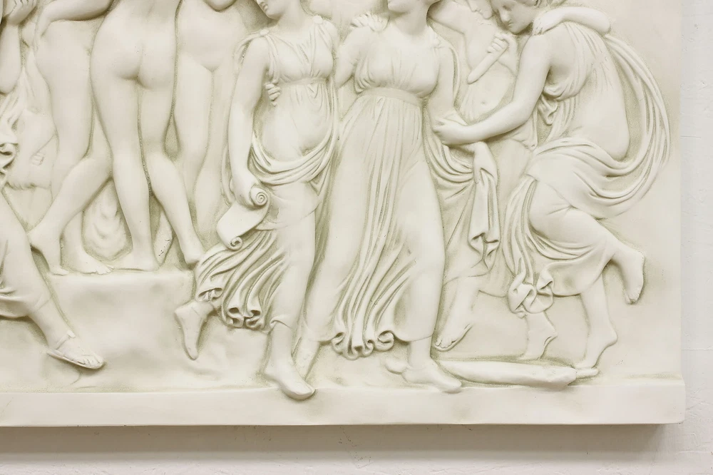 Item # 52812 This wall relief panel of classical Greek figures is after Bertel Thorvaldsen's 1804 sculpture, "Dance of the Muses on Helicon." Vintage work of art from about 25 years ago Bertel Thorvaldsen was a famous Danish sculptor (1770-1844) Fiberglass resin sculpture In very fine condition with minor wear & touchups - see photos Size is 60.5" wide, 2.5" deep and 29" tall. Please view 14 photos at full screen size for best detail. Important Shipping information: We offer significant discounts for shipping multiple pieces out of state. Posted ship rate based on GROUND FLOOR delivery from a trusted blanket wrap service provider. Most deliveries occur within 30 business days of payment, some slightly longer, some shorter. IMPORTANT: AZ, CA, CO, ID, MI, MT, NE, ND, NM, NV, OR, SD, UT, WA, WY and New York City are serviced by a courier van with ONE DRIVER , adequate physical help from the homeowner to unload is required. *Deliveries that require stairs or elevators take more time and can usually be completed with advance notice and a surcharge. *Items requiring a ferry or remote area (Mountain homes, Islands, Keys, etc.) may be excluded from posted rates. *Delivery to properties with COI requirements or limited hours for service may be excluded from posted rates or additional charges may apply. Contact us for more information. Discount rates available to many areas in WI, IL, MN as well as FREE Store Pick Up in Kaukauna, WI. Contact us for more information. Store Information Payment methods The Harp Gallery 2101 Progress Way Kaukauna, WI 54130 Shipping & Handling Buyer pays shipping. Contact us to request independent shipping quotes on Freight Items. Also visit our eBay store for shipping info . Sales tax 5.5% sales tax applicable for WI buyers and customer pickup in Kaukauna, WI. Customer Service & Return Policy We are only happy with satisfied customers! Please reach out to us with any concerns or questions. Return policy: 15% restocking fee/buyer pays return shipping.