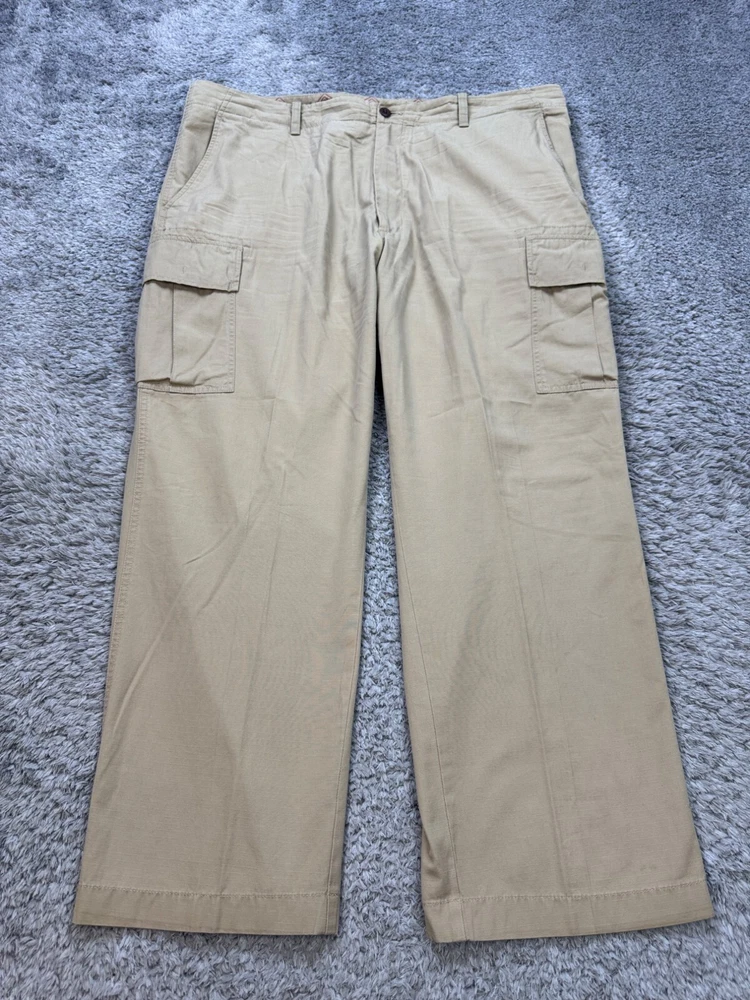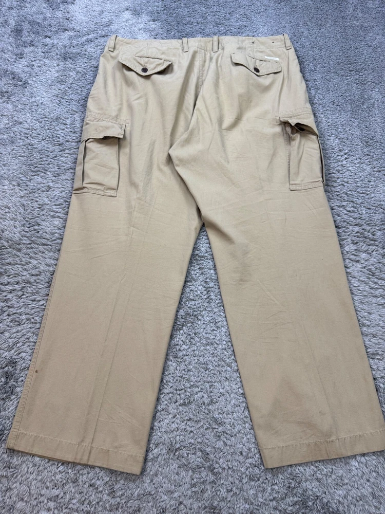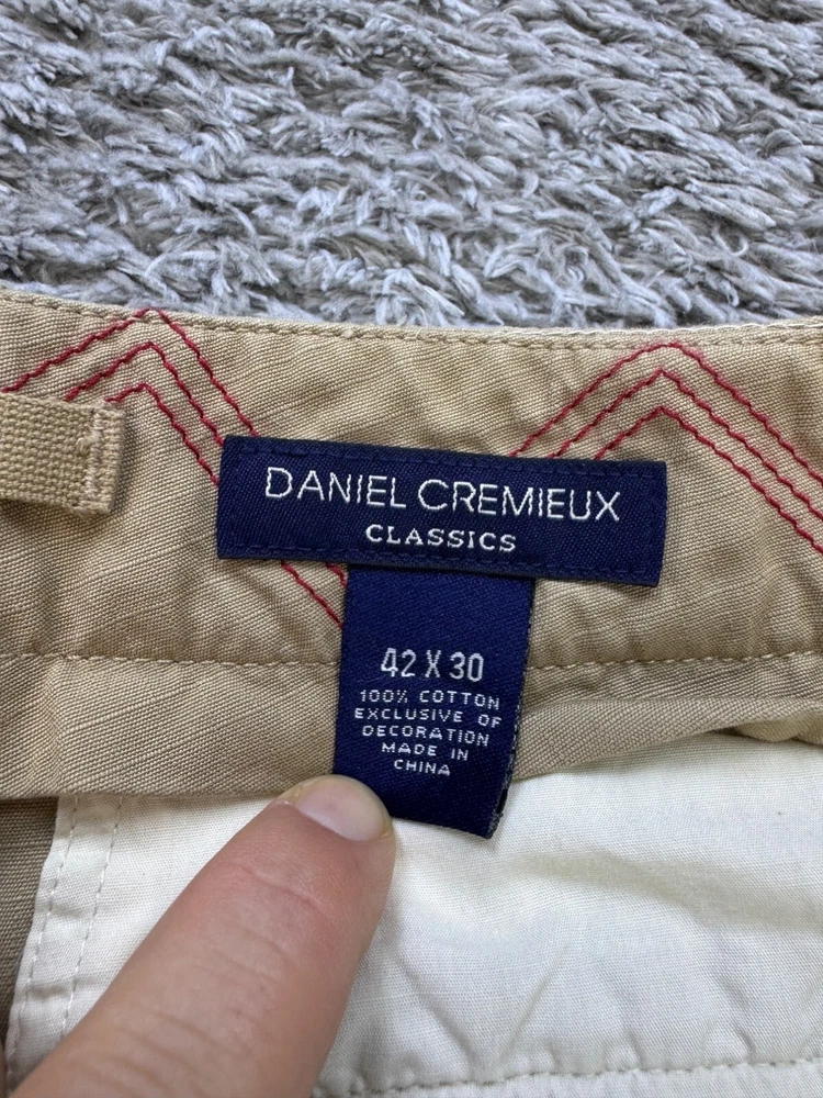Department: Men Fit: Classic Theme: 90s, Army Style: Khakis Occasion: Casual, Formal, Travel Front Type: Flat Front Fabric Type: Canvas Features: Pockets Closure: Button, Zip Rise: Mid (10-12 in) Size Type: Regular Material: Cotton Pattern: Solid Brand: Daniel Cremieux Inseam: 30 in Color: Beige Waist Size: 42 in Type: Pants Size: 42 Leg Style: Straight Accents: Button Pocket Type: Cargo Pocket Vintage: Yes