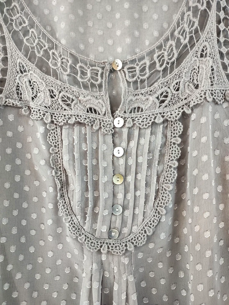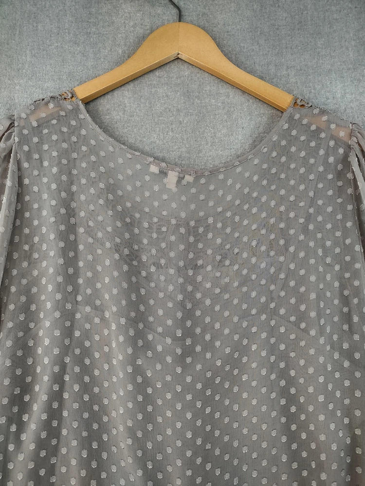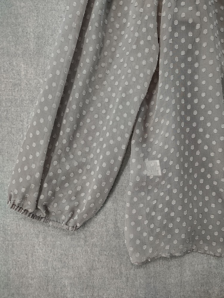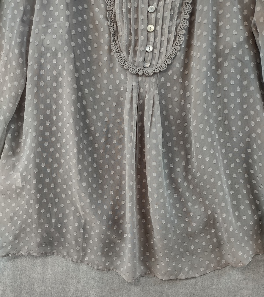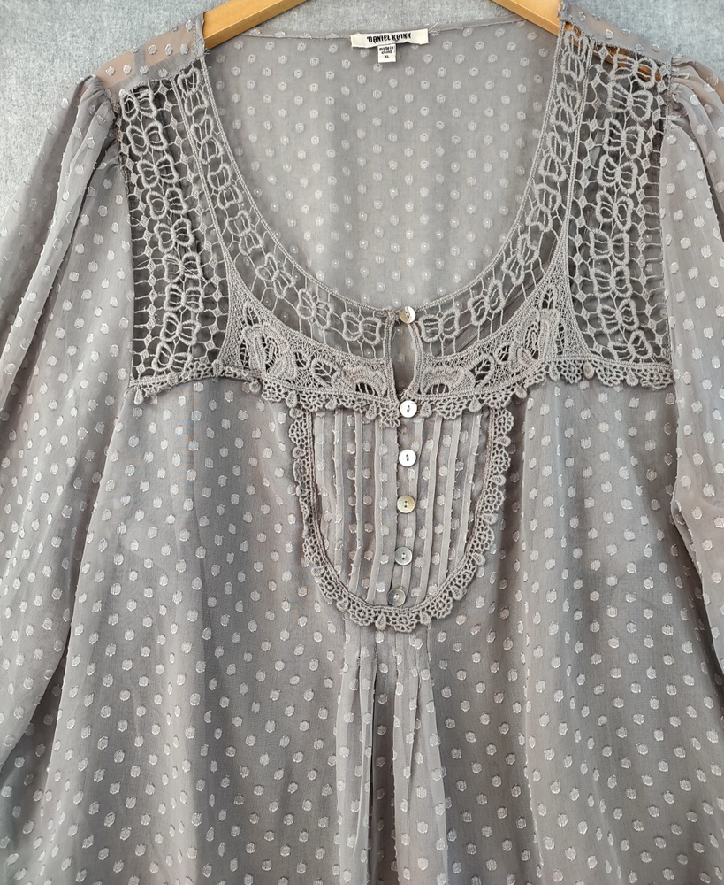 Welcome to Aspen Crossing, your destination for modern western bohemian style reflecting the rugged beauty of our American West. Womens Bohemian Henley Blouse Extra Large Gray Dotted Chiffon Pleated Crochet Lace Balloon Sleeve Tunic Top Blouse Daniel Rainn LENGTH: Measured from the top of the shoulder to the hem. CHEST WIDTH: Underarm to underarm, measured flat from left to right. It is always best to compare the measurements above with a top that fits you comfortably. CONDITION - Good pre-owned condition. Stretched seams in front. All items are cleaned per EBAY standards. Not spot treated. See the photo gallery to view this items measurements and condition. SHIPPED - USPS First Class Mail unless item weight requires priority mail. RETURNS accepted, must be returned within 30 days in original condition to receive a full refund. SHIPPING AND HANDLING We ship all packages within five business days Monday through Friday except Holidays. Consolidated shipping is available for multiple purchases. Thank you for helping our planet and buying previously owned and loved items. I am grateful for your business. Enjoy! Check out our eBay store and follow us. There are new listings daily. CUSTOM SKU: 2869 Disclaimer: While we make every effort to capture the most accurate depiction of every item when photographing, colors may vary from screen display to in person therefore we cannot guarantee "exact shade" on any item. Message us if you have questions.