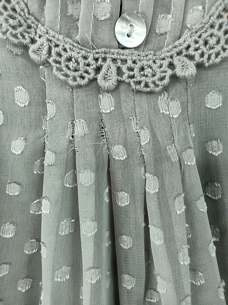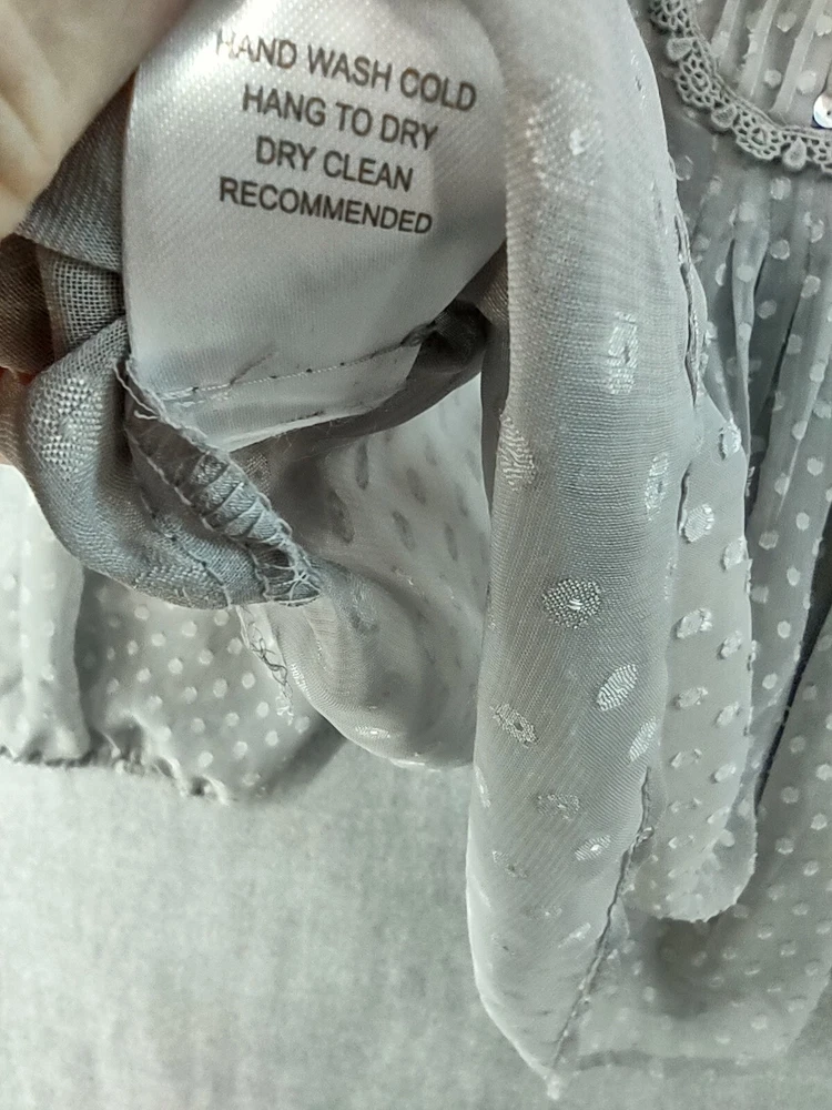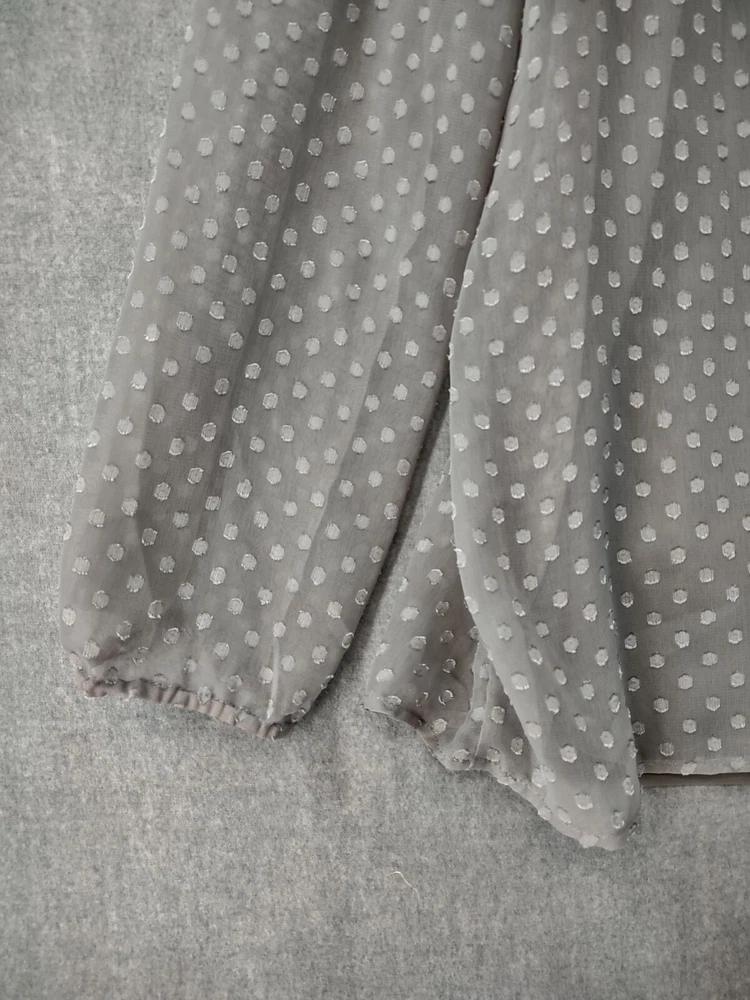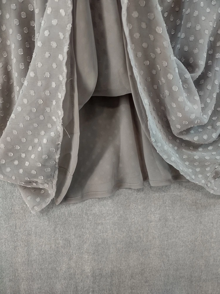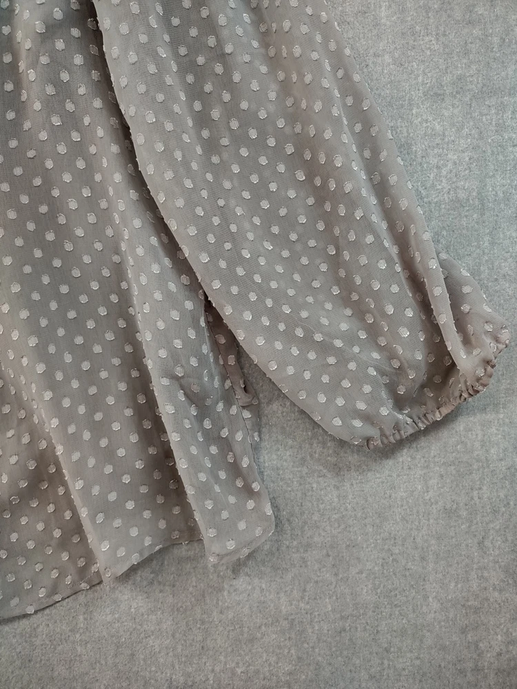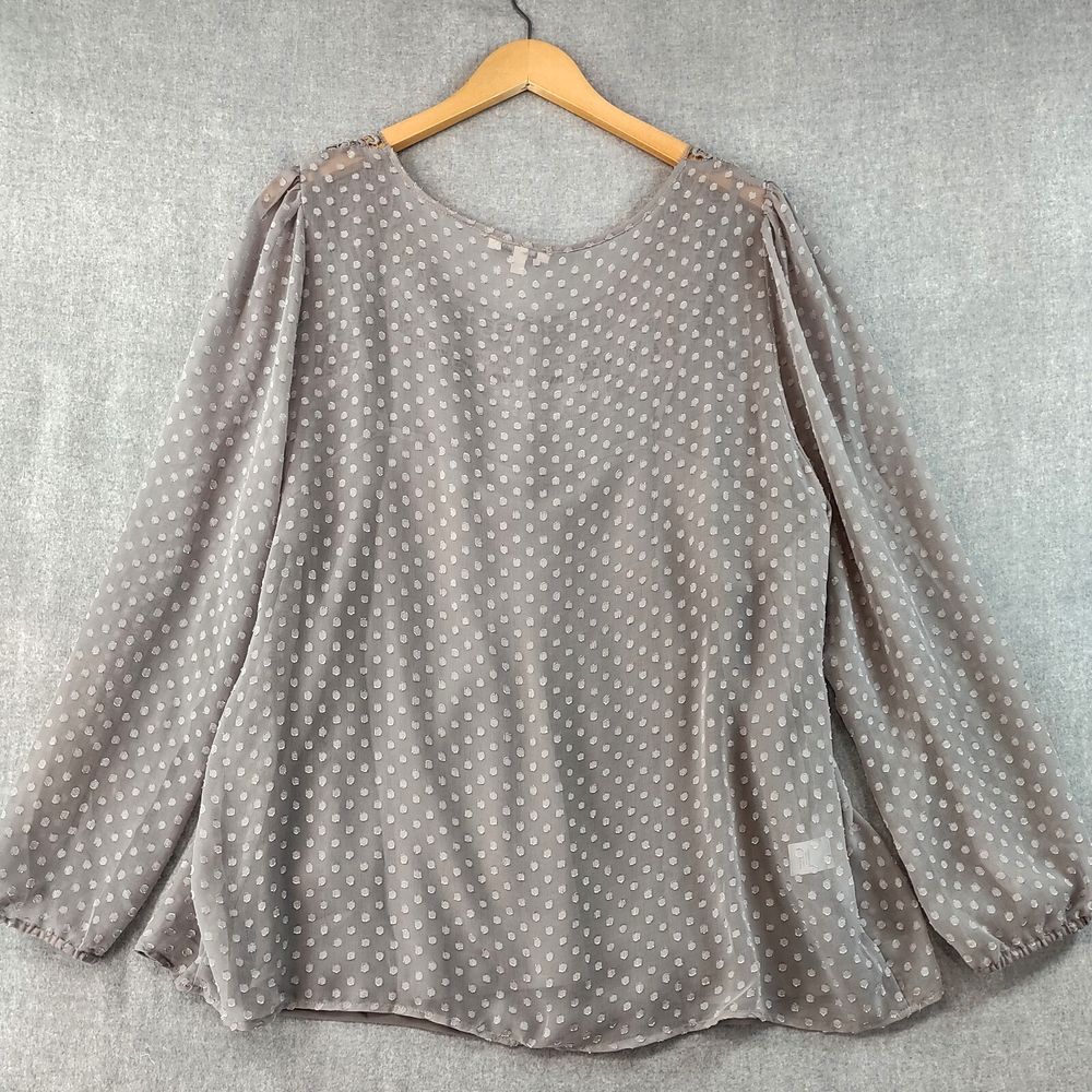 Welcome to Aspen Crossing, your destination for modern western bohemian style reflecting the rugged beauty of our American West. Womens Bohemian Henley Blouse Extra Large Gray Dotted Chiffon Pleated Crochet Lace Balloon Sleeve Tunic Top Blouse Daniel Rainn LENGTH: Measured from the top of the shoulder to the hem. CHEST WIDTH: Underarm to underarm, measured flat from left to right. It is always best to compare the measurements above with a top that fits you comfortably. CONDITION - Good pre-owned condition. Stretched seams in front. All items are cleaned per EBAY standards. Not spot treated. See the photo gallery to view this items measurements and condition. SHIPPED - USPS First Class Mail unless item weight requires priority mail. RETURNS accepted, must be returned within 30 days in original condition to receive a full refund. SHIPPING AND HANDLING We ship all packages within five business days Monday through Friday except Holidays. Consolidated shipping is available for multiple purchases. Thank you for helping our planet and buying previously owned and loved items. I am grateful for your business. Enjoy! Check out our eBay store and follow us. There are new listings daily. CUSTOM SKU: 2869 Disclaimer: While we make every effort to capture the most accurate depiction of every item when photographing, colors may vary from screen display to in person therefore we cannot guarantee "exact shade" on any item. Message us if you have questions.