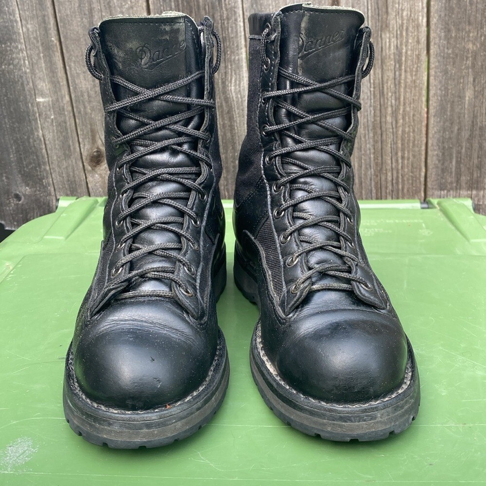 Command attention with these robust Danner Acadia work boots, a testament to American craftsmanship and enduring quality. These boots feature a classic silhouette, built for performance and longevity. The sturdy construction promises unwavering support and protection, while the lace-up design ensures a snug, personalized fit. The black leather and nylon upper exudes rugged sophistication, ready to tackle any challenge. Ideal for demanding work environments, outdoor adventures, or simply adding an edge to your everyday style. in the USA, the Acadia features Danner's famous stitchdown construction, providing a more stable platform underfoot and superior durability. This boot has a waterproof, breathable GORE-TEX lining and a combination upper of 1000 Denier nylon and full-grain leather. The Vibram Kletterlift outsole provides superior shock absorption and great traction on both wet and dry surfaces. All items are pre-loved unless otherwise noted. The colors in real life may differ from how they appear on your phone or computer screen. Please refer to the pictures for condition and measurements. Let me know if you have any questions. Reasonable offers welcome and encouraged. Same or next day shipping in most cases. Thanks for looking and have a great day. Keywords: Danner, Acadia, Work Boots, Leather Boots, Nylon, Black Boots, Lace Up Boots, Mens Boots, USA Made, Hiking Boots, Outdoor Boots, Construction Boots, Military Boots