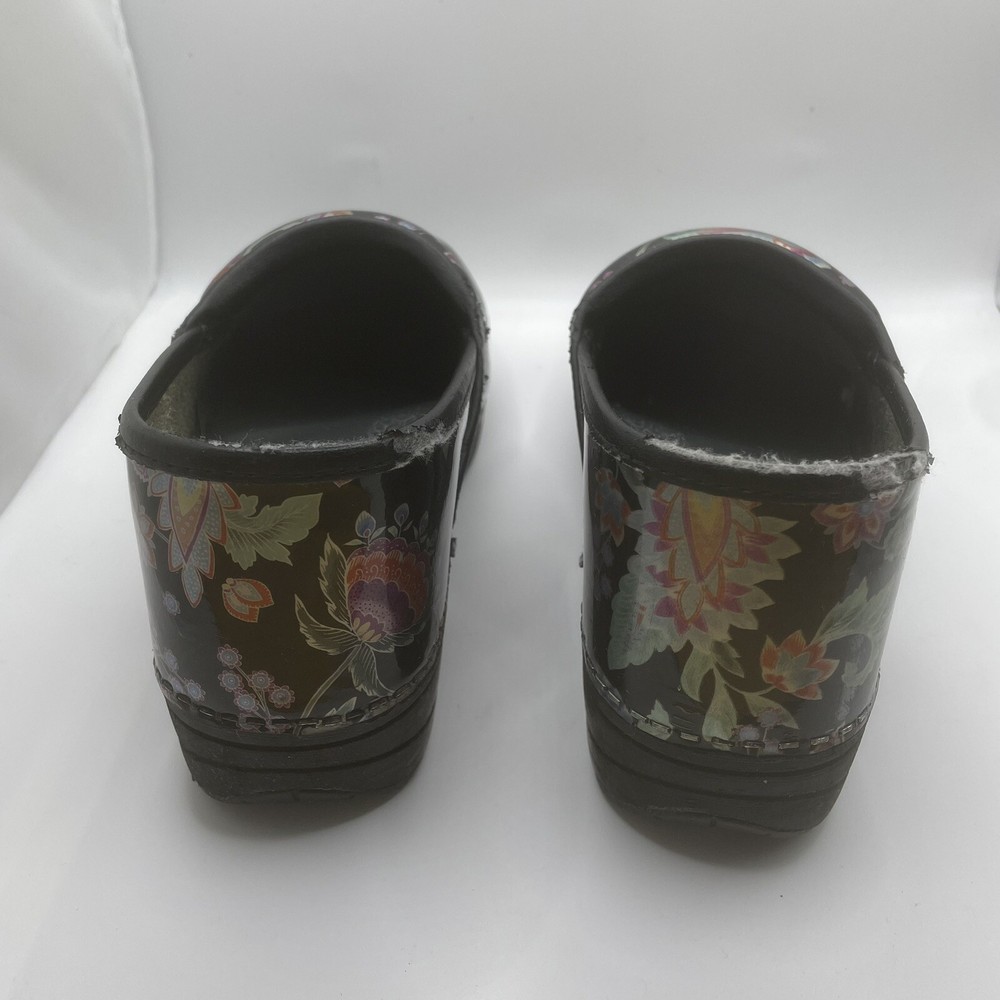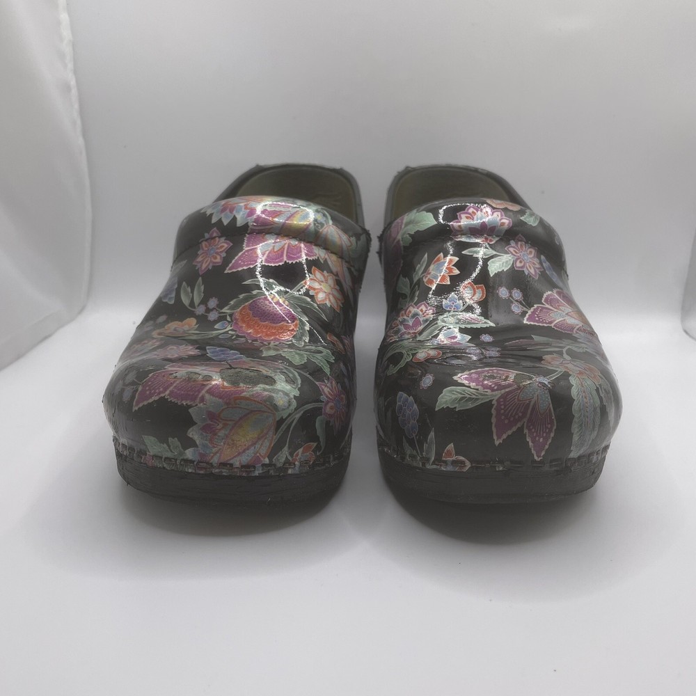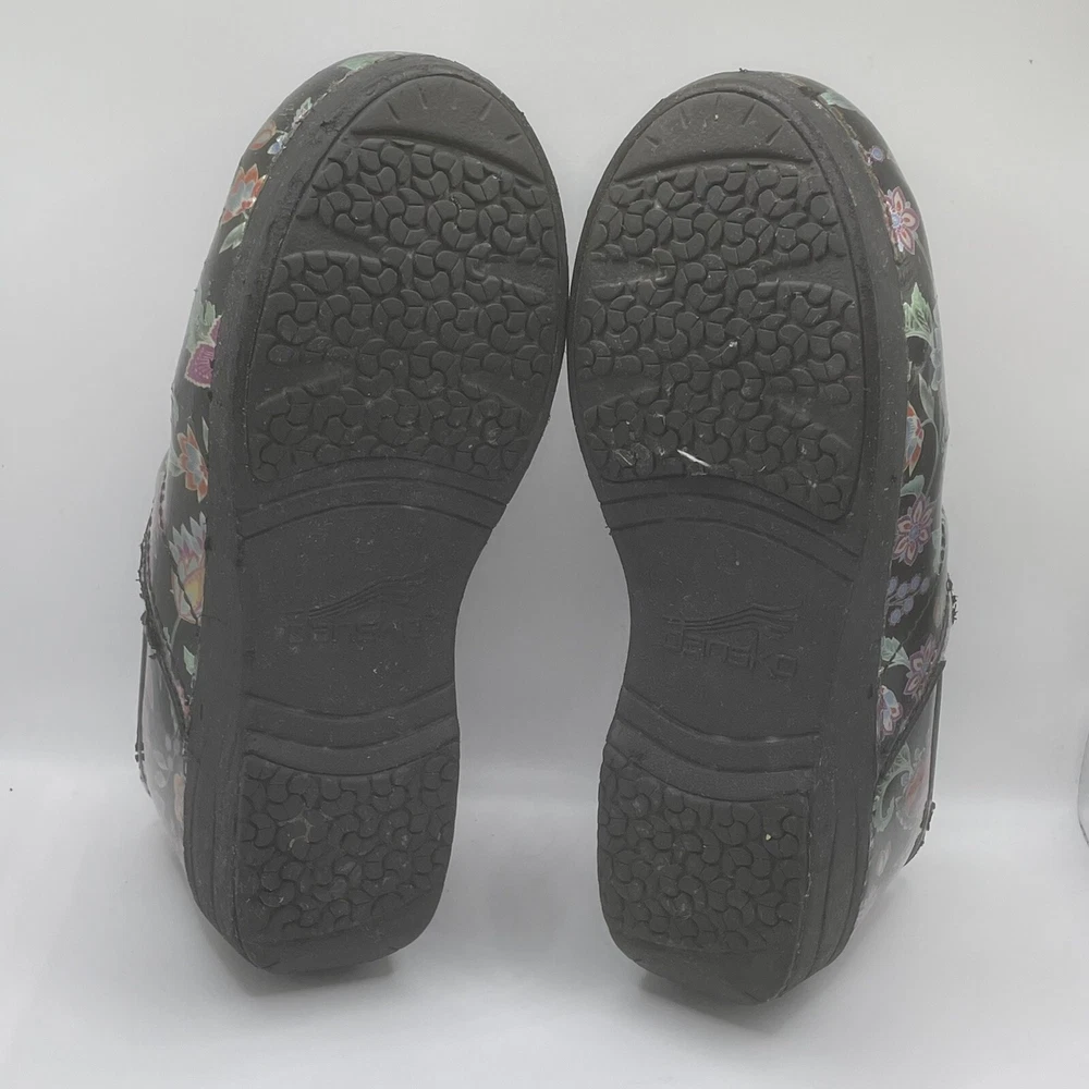 Dansko 38 Women’s Clogs Floral Pattern Slip On Shoes Multicolor Leather Upper Has some wear (see pictures for condition) Size 38 (US 7.5-8 Womens) I have added a size chart in the photos as well.