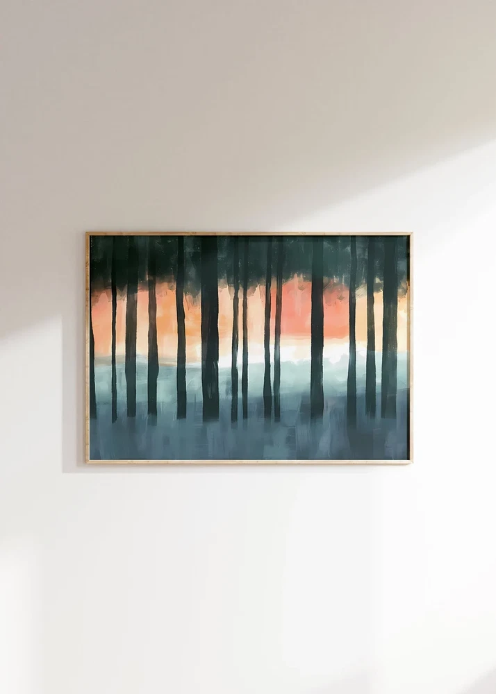 Dark Forest with Fog & Tall Trees Paint Poster Premium Quality Choose your Size