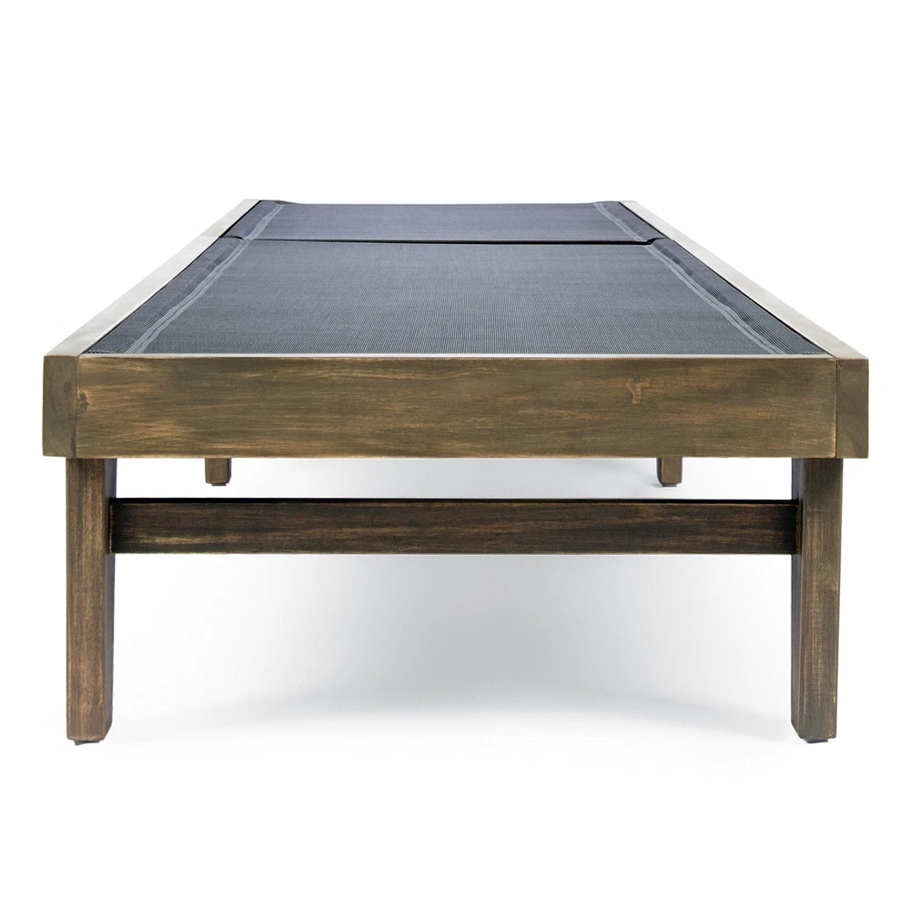 Specifications Place of Origin #originPlace# Main Color DARK GREY Main Material Acacia Wood Dangerous Goods #dangerFlag# Dimensions & Weights Assembled Length (in.) 78.25 Assembled Width (in.) 24.00 Assembled Height (in.) 31.50 Weight (lbs) 33.07 Product Features Give yourself the freedom to relax with your favorite book or take a nap under the summer sun. Made from sustainably sourced acacia wood with a special made mesh for the seat, these lounges are both comfortable and stylish Light Assembly Required Dimensions: 78.25 inches deep x 24.00 inches wide x 31.50 inches high Description