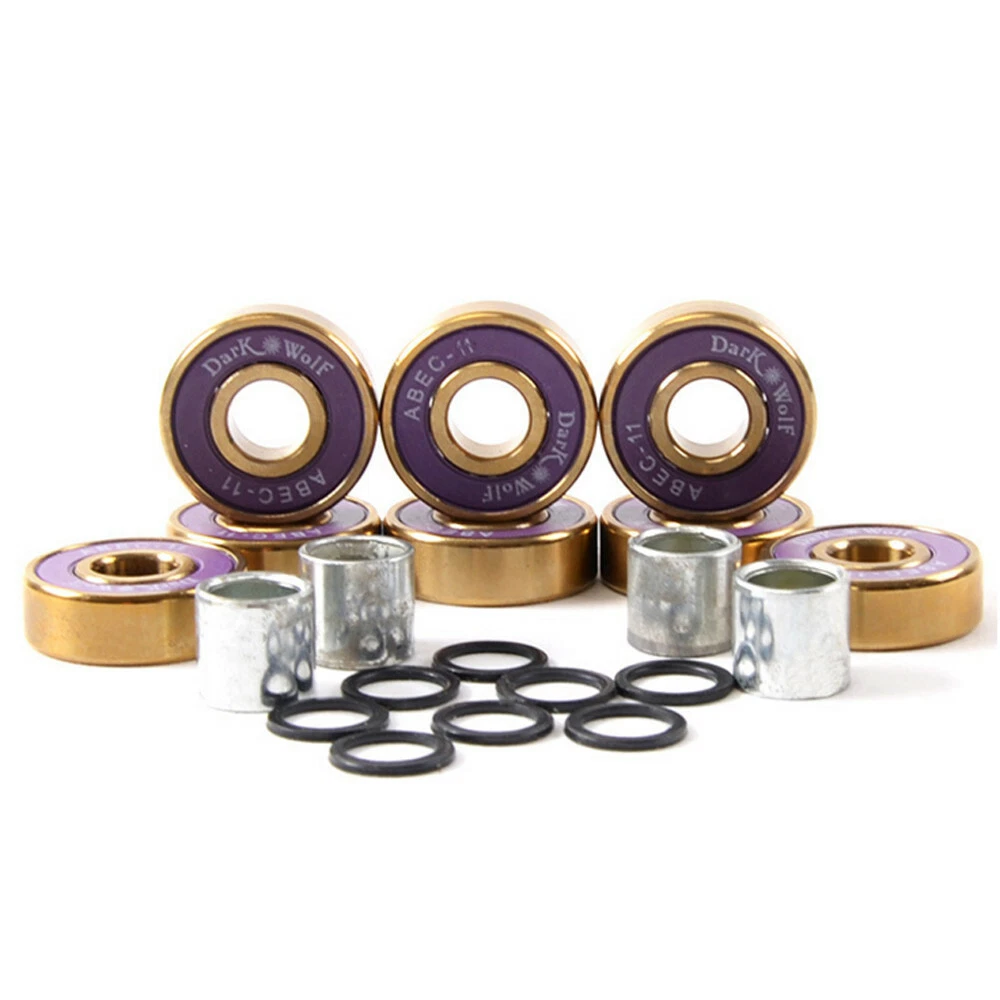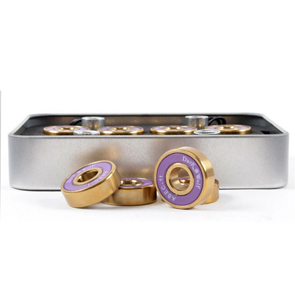 HOME DETAIL SHIPPING ABOUT US CONTACT US Store Categories {Category} Detail Description: Set of Dark Wolf Skateboard Bearings Titanium ABEC 11 Purple Gold 8pcs with 4pcs Spacers This ABEC-11 high-level Dark Wolf skateboard bearing is made by titanium electroplating process and chrome steel, stable, durable, anti-corrosion, wear-resistant, dust-proof and stainless. Fit well for skateboarding Brand: Dark Wolf Type: ABEC-11 titanium chrome steel bearing Material: titanium electroplating process/chrome steel Stable, durable, anti-corrosion, wear-resistant, dustproof and stainless No noise and good anti-swelling property Dimension: Approx 22 x 7mm/0.86 x 0.27" Weight: Approx 160g. Color: Purple rubber cap/Gold inside & outside 100% Brand new Package Includes: 8 x Skateboard Bearing 4 x Spacer 1 x Original Packing HOME DETAIL SHIPPING ABOUT US CONTACT US Detail Description: Set of Dark Wolf Skateboard Bearings Titanium ABEC 11 Purple Gold 8pcs with 4pcs Spacers This ABEC-11 high-level Dark Wolf skateboard bearing is made by titanium electroplating process and chrome steel, stable, durable, anti-corrosion, wear-resistant, dust-proof and stainless. Fit well for skateboarding Brand: Dark Wolf Type: ABEC-11 titanium chrome steel bearing Material: titanium electroplating process/chrome steel Stable, durable, anti-corrosion, wear-resistant, dustproof and stainless No noise and good anti-swelling property Dimension: Approx 22 x 7mm/0.86 x 0.27" Weight: Approx 160g. Color: Purple rubber cap/Gold inside & outside 100% Brand new Package Includes: 8 x Skateboard Bearing 4 x Spacer 1 x Original Packing