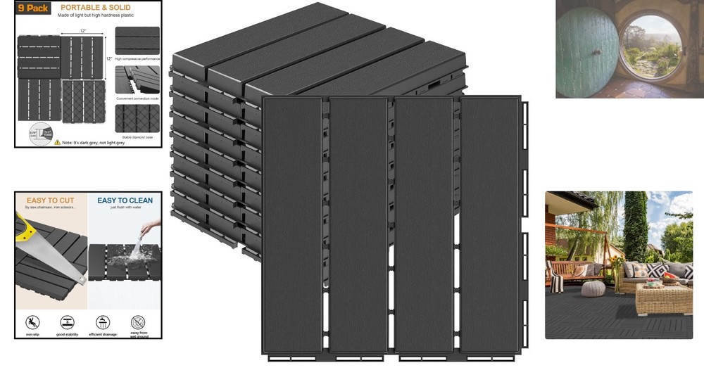 Lightweight 9-Pack Dark Grey Interlocking Deck Tiles - Easy Snap Installation ‹ › ‹ › ‹ › ‹ › ‹ › ‹ › ‹ › ‹ › ‹ › Lightweight 9-Pack Dark Grey Interlocking Deck Tiles Easy Snap Installation Features: Constructed from high hardness plastic, offering a lightweight yet firm alternative to wooden deck tiles. Exceptional load-bearing properties while maintaining moisture resistance. Stability ensured with high-density plastic that withstands direct sunlight, rain, and snow, perfect for all- use. Upgraded interlocking mode for faster and tool-free installation. Rectangular snaps create a secure connection between flooring tiles to prevent separation. Efficient drainage design with four flat surfaces and three drains to eliminate water accumulation. Rhombic structure on the back for improved friction, enhanced stability, and air circulation. Low maintenance cost; easily cleaned with water and a cleaning tool. Customizable with a saw for tailored sizing to fit your unique spaces. Benefits: Durable and weather-resistant for all seasons. Efficient drainage system keeps floors neat and safe. Convenient, low-maintenance design perfect for busy lifestyles. Versatile use in outdoor and indoor settings, such as patios, pool areas, gardens, and bathrooms. Easily customizable for any space, ensuring a perfect fit. Why choose our Interlocking Deck Tiles? Transform your outdoor space with our Lightweight 9-Pack Dark Grey Interlocking Deck Tiles, a perfect blend of style, durability, and practicality. Say goodbye to cumbersome wooden tiles and hello to a lightweight, high-performing alternative. With effortless snap installation and a unique drainage design, you can create a stunning area for relaxation or entertainment without sacrificing functionality. Elevate your outdoor aesthetic while ensuring ease of maintenance. Invest in a flooring solution that is both convenient and durable. Make your purchase today and redefine your living spaces effortlessly! Shipping Free & Fast Shipping - We offer free shipping to most of the USA with a normal delivery time of 3-7 days. However, due to the current situation, additional delivery time (up to 3 weeks) may be required for some items. Alternative Carriers - We may use alternative carriers (e.g. USPS, FedEx, UPS, etc.) to ensure your package arrives safely and on time. Due to the use of multiple carriers, we are unable to provide a tracking number automatically. Handling Time - Orders are processed and shipped within 1-2 business days of receiving cleared payment. Shipping Restrictions - Shipping to Alaska, Hawaii, Puerto Rico, Guam, and other US territories may incur shipping charges or delivery restrictions. Please contact us before ordering, or your order can be refunded/cancelled. State Restrictions - There may be restrictions based on your state of purchase. For example, certain items may not be shipped to California due to state regulations. Contact for Tracking Updates - If you require tracking updates or have any concerns about the delivery of your order, please feel free to contact us, and we will be happy to assist you. Return 30-Day Hassle-Free Returns - We want you to be completely satisfied with your purchase. If you are not, you can return the item within 30 days of receiving it for a full refund or exchange. Easy Return Process - To start a return, simply contact us and we will provide you with a prepaid return shipping label and detailed instructions. Restocking Fee - There are no restocking fees for returns. However, the buyer is responsible for return shipping costs if the return is not due to a seller's error. Refund Processing Time - Refunds will be processed within 5 business days of receiving the returned item in its condition. Payment We accept all major credit cards, PayPal, and Apple Pay for your convenience. Your payment information is secure and encrypted to ensure a safe and seamless transaction. Please complete your payment within 3 days of purchase to avoid any delays in shipping. Feedback Your feedback is extremely important to us. We strive to provide the best products and customer service possible. If you are satisfied with your purchase, please take a moment to leave us a positive review. If you have any concerns or issues with your order, please contact us before leaving negative feedback. We are committed to resolving any problems and ensuring your satisfaction. Contact Us If you have any questions or concerns, please feel free to out to our customer support team. You can contact us through the eBay messaging system. We are available Monday to Friday, 9:00 am to 5:00 pm EST, and we will do our best to respond to your inquiry within 24 hours. Buy it now and enjoy a pleasant shopping experience! Hardness: High Unit Quantity: 9 Pack Material: Plastic Installation: Click/Interlocking Features: Easy to Install,Non-Slip,Waterproof Installs over Subfloor: Concrete,Plywood Suitable For: Commercial,Commercial & Residential,Residential Installation Location: Below Grade/Concrete Subfloor,On Grade/Concrete Subfloor,Outside Room: Bathroom,Living Room,Patio,Balcony,Poolside,Garden,Outdoor Playground,Walkway Type: Flooring Tiles Wood Species: None Color: Dark Grey Finish: Smooth Shading: Dark Item Weight: 6.13 lb Gloss: Low Gloss Item Thickness: 1.5 cm Size: 12 x 12 in Number of Items: 9 Style: Modern Pack Size: Case Floor Surface Texture: Smooth Coverage: 10 ft² Plank Size: Medium Width Edge Type: Straight Edge Fire Rating: Efl Minimum Acclimation Period: No Acclimation Required Wear Layer Thickness: 0.05 cm