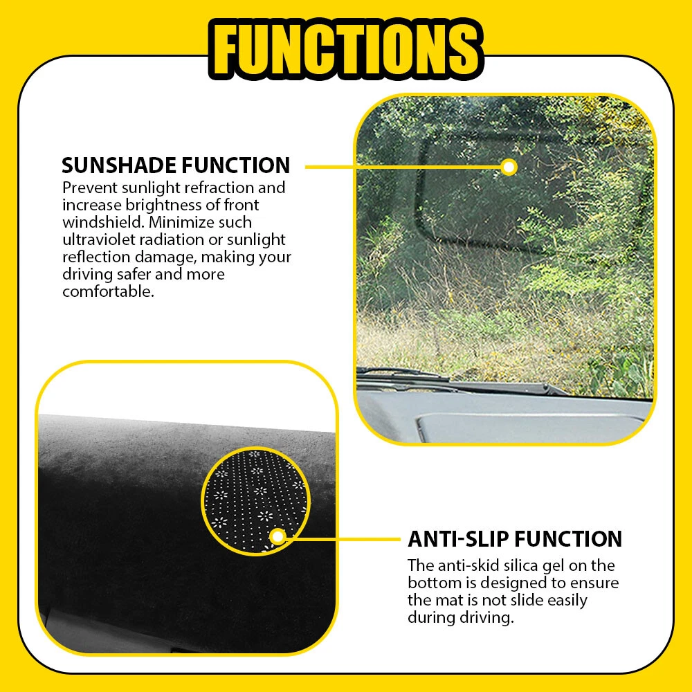 Dashboard Pad Dash Cover Mat Fit For Toyota 4Runner 2003-2009 Fit for: Toyota 4Runner 2003-2009 Package Include: Dashboard Cover Mat *1 Specification: Product material: Polyester + anti-skid silica gel Product color: black Features: *Sunshade function: Prevent sunlight refraction and increase brightness of front windshield. Minimize such ultraviolet radiation or sunlight reflection damage, making your driving safer and more comfortable. *Anti-slip function: The anti-skid silica gel on the bottom is designed to ensure the mat is not slide easily during driving. Dash Mat Dashmat Dashboard Cover Fit Toyota 4Runner 2003-2009 Black Carpet H Dashboard Pad Dash Cover Mat Fit For Toyota 4Runner 2003-2009 Fit for: Toyota 4Runner 2003-2009 Package Include: Dashboard Cover Mat *1 Specification: Product material: Polyester + anti-skid silica gel Product color: black Features: *Sunshade function: Prevent sunlight refraction and increase brightness of front windshield. Minimize such ultraviolet radiation or sunlight reflection damage, making your driving safer and more comfortable. *Anti-slip function: The anti-skid silica gel on the bottom is designed to ensure the mat is not slide easily during driving. *Great protection: Protecting the Dashboard surface from scratches, cracks and warping. *Superior material: Polyester material is used on mat surface which is quite durable ,elastic and without deformation and pilling. *Perfect fit: With its well-cut shape, it will line up with your car in all the right spots. *High qulity: Durable, colorfast, non-shrinking needle-punch carpet *Easy installation Simple installation with direct replacement and convenient disassembly,other modifications are not required. *In Winter, warm the dashboard *In Summer, block UV rays from heating-up,cool the car, prevent high temperature *Environment-friendly materials, no bad smells, anti-slip. *Simple installation: 1. Clean the dashboard. 2. Place the mat on top of it. 3. Done. Contact us: If you have any questions, please feel free to contact us, we will restart and help you solve the questions. Item Specifics Brand AUXITO Manufacturer Warranty 3 Years Country/Region of Manufacture China Features Easy Installation Number of Pieces 1 Size As Photo Show Return Policy 60 Days Free Return Fitment Type Direct Replacement Manufacturer Part Number Fit For Toyota 4Runner 2003-2009 OE/OEM Part Number Car Dashboard Mat Pad Color Black Material Polyester,anti-skid silica gel Package Include Dashboard Cover Mat *1 Custom Bundle No Modified Item No Non-Domestic Product No Finish Matte Vintage Part No Performance Part No Superseded Part Number Car Dashmat Carpet Interchange Part Number Dashmat Universal Fitment No Items Included Tape Type Dash Cover FAQ ♥ If you have a decoding problem or any other problems, please contact us first, we will help you with it. We will reply you within 24 hours in working days. I'm a new seller, thanks a lot for your trust and convince! I will serve you with all my heart. ♥ Q1: Will this bulb fit my vehicle? A: We can match almost any vehicle to one of our bulb sizes. eBay only lets us include some vehicle fitments per listing, but if your vehicle does not show up on the compatibility table at the top of our listings, welcome you to contact us for free consulation before purchasing a product. Q2: My item has not arrived, what's taking so long? A: Sometimes items take longer than expected, especially if it’s going far or to rural area. Check with your post office to see if your item has been held up. Sometimes Royal Mail will not update a tracking number until it has arrived at its destination. If your item still don't arrive after a few days, let us know so we can double check for you and help solve it asap. Q3: My bulbs won't fit, help! A: Special bulb holder may be required. See if you can take the holder from the stock bulb. If not, let us know. The bulb size may be wrong, double check the item you received with the item you ordered. Do you have an aftermarket lighting housing? These may not be perfectly fitted for aftermarket bulbs and will require some manual modifications. Q4: Neither side lighting up? Both sides flicker, hyper flash, or work inconsistantly. A:Check the light fuses, and then check the ballast plugs to insure correct installation. If this doesn't work, there may be a voltage problem with the vehicle. You probably just need a relay or capacitor. Even though some bulbs are builtin resistors, they may still need a decoder. Pay & Ship (1). We gladly accepts payment via PayPal, We will ship your item(s) within 24 hours. (2). Before payment, please keep the consistency of Paypal address and ebay address. (3). Quantity orders are welcome! Returns (1). We offer 60 days free return policy. Please contact us within 60 days from the date you receive your order if you have any issues with the product or want return. Refund will be send after we got your resend package. (2). All returned items should be in the original packaging , return tracking information should be provided . Contact Us (1).Negative feedback will not help resolve any problems you have, please contact us via eBay messages before leaving negative feedback , our customer service will make best effort to help you with the issues. (2).We maintain high standards of excellenceand strive for 100% customer satisfaction! Feedback is very important to us. We request that you contact us immediately before you give us neutral or negative feedback, so that we can satisfactorily address your concerns. About us We're professional in car and motorcycle accessories, especially in LED bulbs. We have our own factory and R&D team. Our belief is to sell top quality items that fit your car and serve you with our heart. Anything please feel free to contact us! Our customer service is very responsibility. Come and follow us! DESCRIPTION NEW ARRIVED HOT SALE CONTACT US SAVE US Store Category Store Home Other Hot Item Fits 2019-2021 CHEVY SILVERADO
