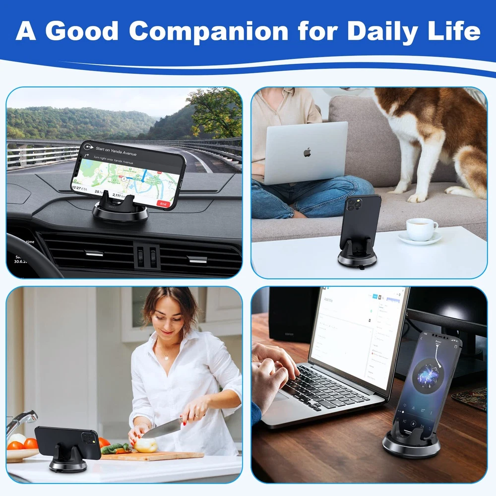 Top Stability - Consist of advanced silicone and a strong adhesive rubber base with suction cup, this dashboard phone holder will grip firmly on your car dashboard and protect your phone safety while driving. Washable & Reusable - The car phone holder mount can be removed from the dashboard without leaving any traces. It is designed to be washable and reusable. The silicone bottom will become sticky as new after flush. Case Friendly - With the thickness adjustable design, the car dash phone holder is suitable for almost all phones or GPS devices within 0.79 inches. Easy to install. Just peel off the adhesive film and stick it directly on the dashboard. Perfect Driving Angle - Based on the ergonomic tilt design and the 360° rotatable base, the phone mount for car provides a perfect driving angle without blocking the driver's sight. Multiple Usages - This dashboard phone cradle can not only be used in the car but also as an ideal desk phone stand when watching videos at home, laying the phone in the office, or exercise at the gym.