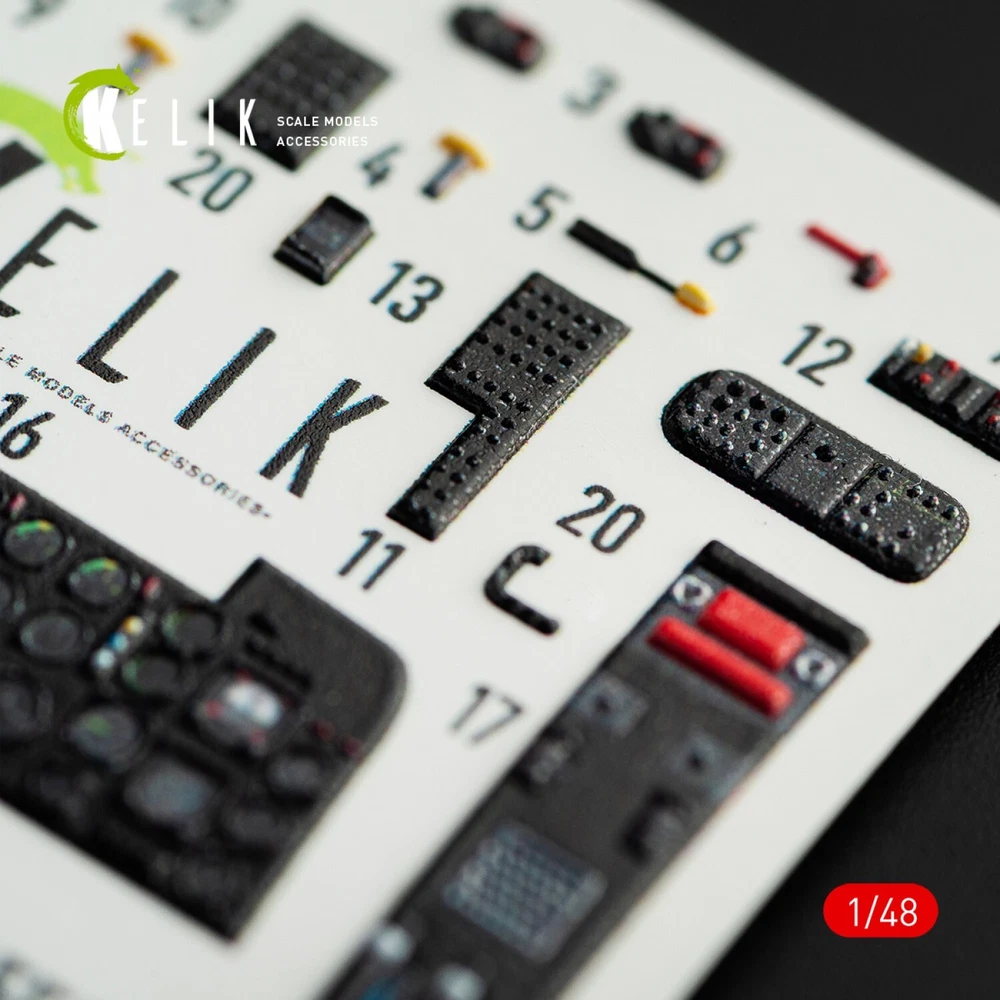 Dauphin II SA.365F / AS.565SA interior 3D decals for Kitty Hawk kit Scale 1:48 KeliK K48072 - For Plastic Model Kit High quality, easy to apply, add realism and detail to your model. Scale: 1:48 Manufacturer: KeliK (Ukraine) Country/Region of Manufacture: Ukraine Condition: New in Box Features: Kit Category: Interior 3D decals Type of equipment: Helicopters Recommended kit: Kitty Hawk / Zimimodel kit (DAUPHIN II, SA.365F, AS.565SA) ---------------------------- Scale model accessories are a wide range of parts, spares, and components that can help you make your model even more realistic and detailed. In our catalog, you will find everything you need to assemble and repair model cars, airplanes, ships, tanks, and weapons. Our accessories are made from high-quality materials and meet all standards. We offer a wide range of models and sizes so you can find what you need. Buy scale model accessories in our store and make your model even more unique!
