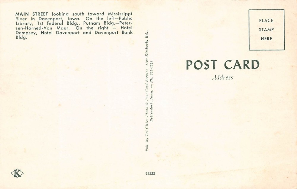 Davenport IA Iowa Main Street Downtown Hotel Dempsey 1960s Vtg Postcard B62