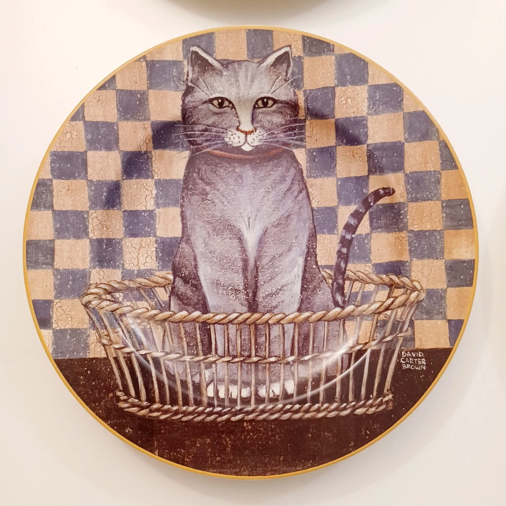 David Carter Brown Country Kitties Salad Plates Dessert Plates Cats Set of 4 - Signed 2004 D.C. Brown & Co. Microwave & Dishwasher Safe Very Good Condition See pics for condition
