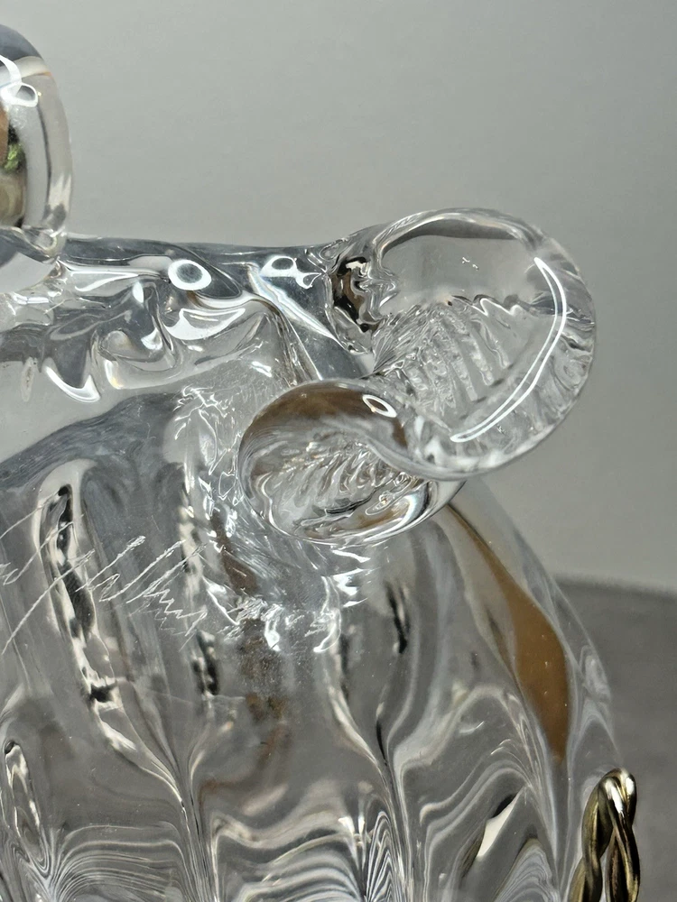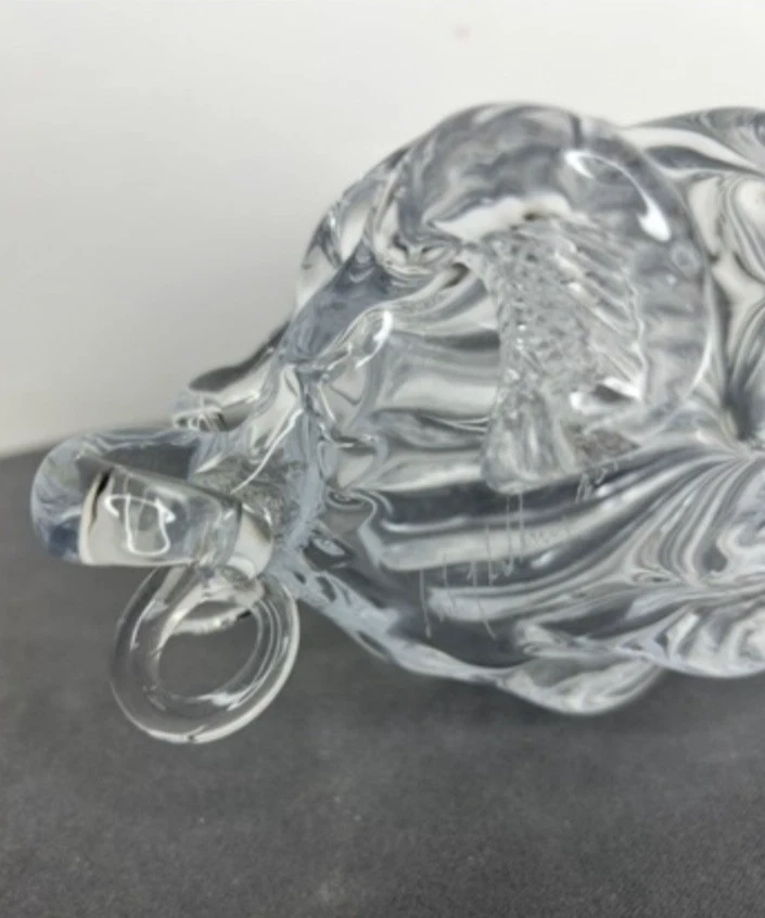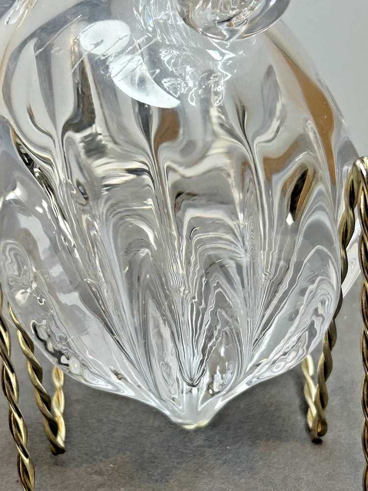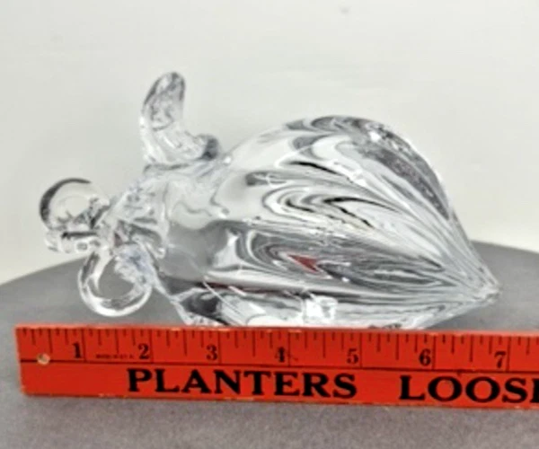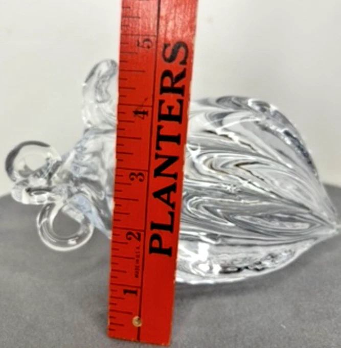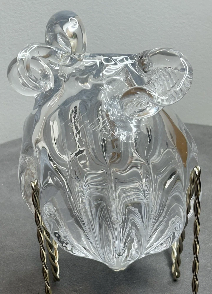 The David Goldhagen Studio Art Glass Signed Acorn Sculpture is a hand-blown glass figurine featuring a large clear glass acorn shape. Signed by the artist, David Goldhagen, this original piece showcases intricate craftsmanship and a unique design, making it a standout decorative item for any space. Handmade with precision and detail, this sculpture adds a touch of elegance and artistry to any collection. This beautiful sculpture measures approximately 6.5" inches in length, about 5" inches in height, 4" inches wide and weighs over 2 pounds. David Goldhagen Studio Art Glass Signed Acorn Sculpture is in excellent pre-owned condition, with NO chips, cracks, scratches or repairs. Please review all pictures for proper assessment of its excellent pre-owned condition.