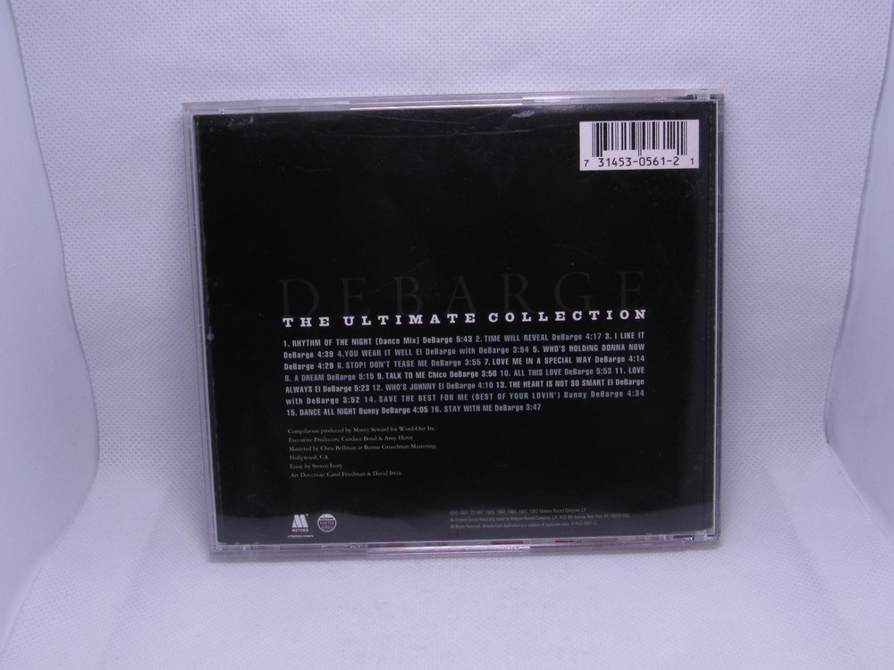 Immerse yourself in the timeless sound of DeBarge with "The Ultimate Collection" CD. This essential compilation, released in 1997 by Motown, brings together 15 of the group's most beloved hits, showcasing their iconic blend of R&B, Soul, and Funk. Featuring classic tracks like "Rhythm Of The Night," "Who's Holding Donna Now," and "All This Love," this album is a must-have for any fan of 80s music and a perfect introduction to the legendary Motown group's discography. Experience the smooth vocals and infectious grooves that defined an era. This collection highlights DeBarge's significant contributions to popular music, making it a valuable addition for collectors and casual listeners alike. The comprehensive tracklist ensures that all the major singles and fan favorites are present, offering a complete retrospective of their career. Discover the artistry of El DeBarge, Bunny DeBarge, and the entire family group through this definitive compilation. A fantastic opportunity to own a piece of music history from one of Motown's most cherished acts.