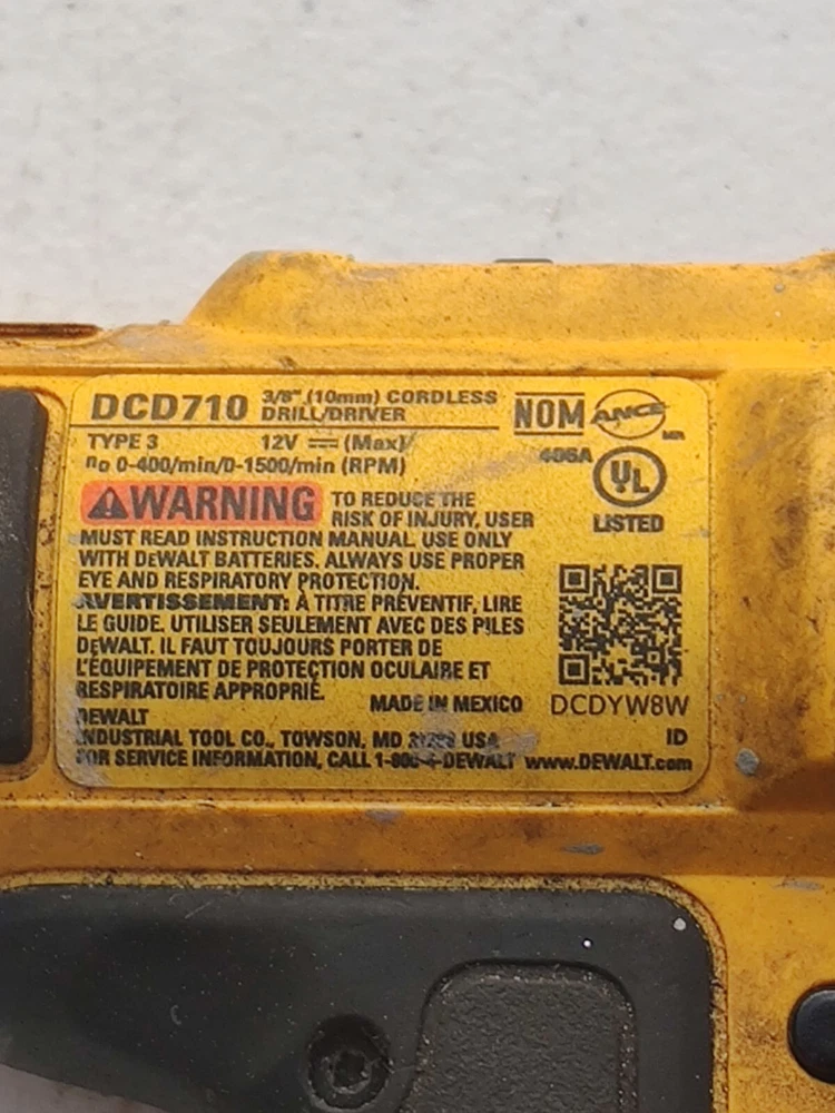 DeWALT 12V 3/8" Cordless Drill/Driver - DCD710 with Battery Only NO CHARGER
