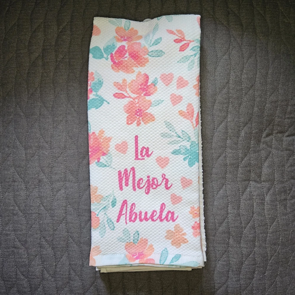 2 of the towels are the same "La Mejor Abuela" print and the 3rd is all white as shown. Please message me with any questions or to see more pictures prior to purchase/bidding/making an offer! I try my best to respond to messages ASAP. Serious bidders/offers only. Please do not bid/make an offer if you don't plan on paying for the item. If you would like to bundle items for discounted shipping, please message me and I will be more than happy to work something out with you! Shipping within United States only. Tracking is included. NO RETURNS. ALL SALES FINAL. Thanks for looking and happy shopping! =)