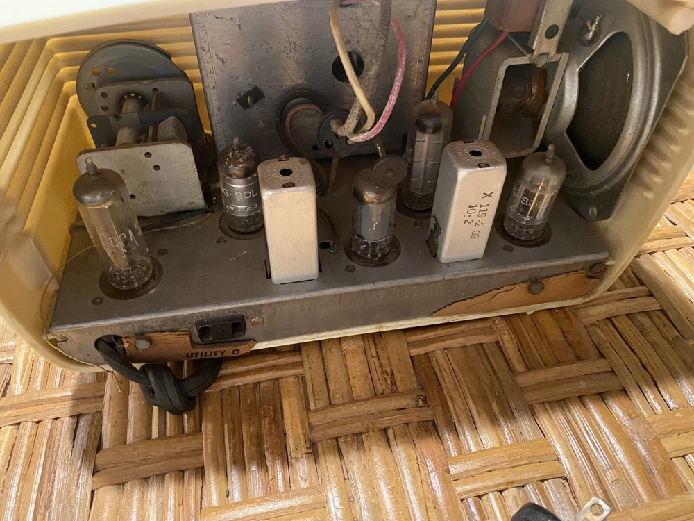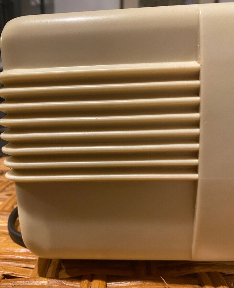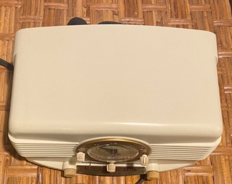 Decca Radio Working 1940s White DR-90 Bakelite . Condition is Excellent. No cracks, or chips to Bakelite. Very clean example. Seldom seen model and color. All original knobs present. 9-3/4"W x 6"H x 5-3/4"D. This radio powers on. It pulls in and plays radio stations.