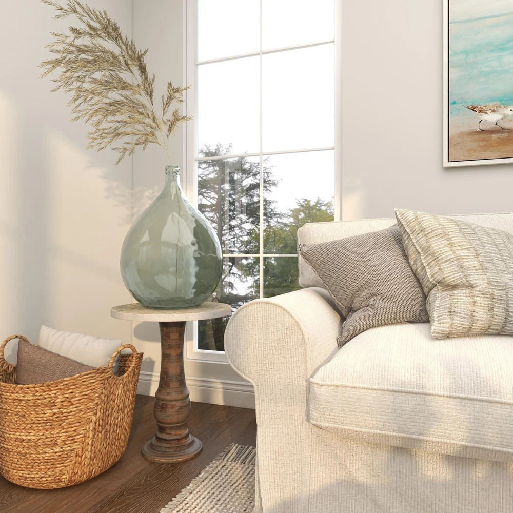 Deco 79 Recycled Glass Handmade Decorative Vase Spanish Bottle Centerpiece Vase, Flower Vase for Home Decoration 16" x 16" x 22", Teal MODERN HOME DÉCOR VASE: Inspired by sleek elegance and clean lines, a minimalistic design offers effortless luxury with monochromatic tones and bold, angular structures RECYCLED GLASS VASE FOR CENTERPIECE: Made from recycled glass, the teal decorative vase is both eco-friendly and stylish TEAL AND CLEAR VASE FOR FLOWERS: The round home decor vase boasts a teal tinted finish ROUND VASE FOR HOME DÉCOR: The recycled glass vase features a unique bulb design that adds character to any space LARGE SIZE FLOWER VASE CENTERPIECE: The teal recycled glass vase measures 15.60L x 15.60W x 21.75H inches, and weighs 14.24 lbs Expertly molded from recycled glass, the modern vase for home decor combines sustainability with artistry. The tinted teal vase for dried flowers has an elegant round shape that complements various interior styles. Wipe clean with a dry cloth. Create depth and form onto your space by displaying this beautifully crafted vase. Get creative with your display by adding long stem arrangement or mix and match with other vases for unique mix of texture and color. Perfect for living rooms or dining areas, the teal centerpiece vase enhances your home with its unique shape. This item ships in 1 carton. Due to the handmade nature of this item, no two will be alike, there will be slight differences in shape, size, and color. Suitable for indoor use only. This item ships fully assembled in one piece. Made in Spain. This is a single teal colored vase. Modern style. Vase has a 1.70 in mouth opening. Shipping We offer FREE shipping on all orders! We use a selection of shipping services such as UPS, FedEx, USPS etc. We only ship to the lower 48 states, no APO/FPO addresses or PO Boxes allowed. Local pickups and combined shipping options are not provided at this time. Return You can return a product for up to 30 days from the date you purchased it. Any product you return must be in the same condition you received it and in the original packaging. Please keep the receipt. Payment We accept payment by any of the following methods: PayPal Please pay as soon as possible after winning an auction, as that will allow us to post your item to you sooner! Feedback Customer satisfaction is very important to us. If you have any problem with your order, please contact us and we will do our best to make you satisfied. Contact Us If you have any queries, please contact us via ebay. We usually respond within 24 hours on weekdays. Please visit our eBay store to check out other items for sale! Thank you for shopping at our store.