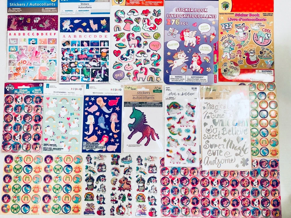 Quality Mixed Sticker Lot | The Ultimate Kit | Qty. 585+ Stickers | High Quality Only! Fun Assortment of Puffy, Scrapbook, Cartoons, Bubble, Pop Up Stickers Packs For Everyone! I have included a large variety of pictures of the assortment available. The pictures give you an idea of what you will be receiving. Please Note: You will not receive everything pictured. Please contact me with any special requests. This HUGE Variety of fun designs stickers can be used in parties, classroom, school and home, good for reward for students, potty training, adding inside a birthday card, game activities, entertaining toddlers, etc. Perfect Gifts for Kids & all Occasions: Can be given as a gift for kids, girls, boys, toddlers, teens, students, friends, and classmates, they will love it!