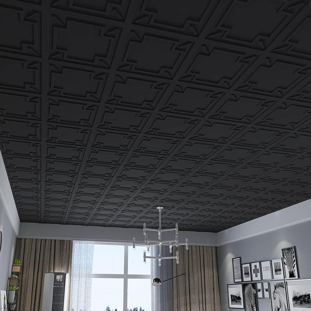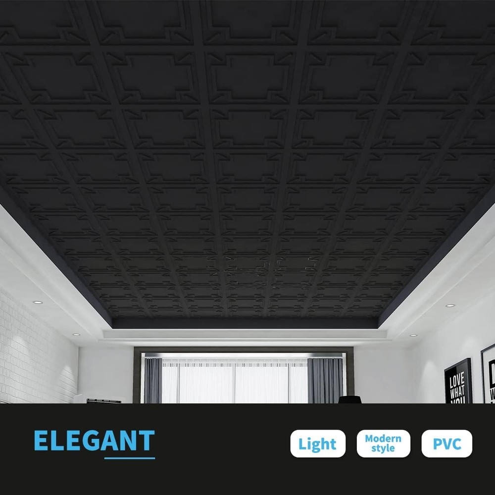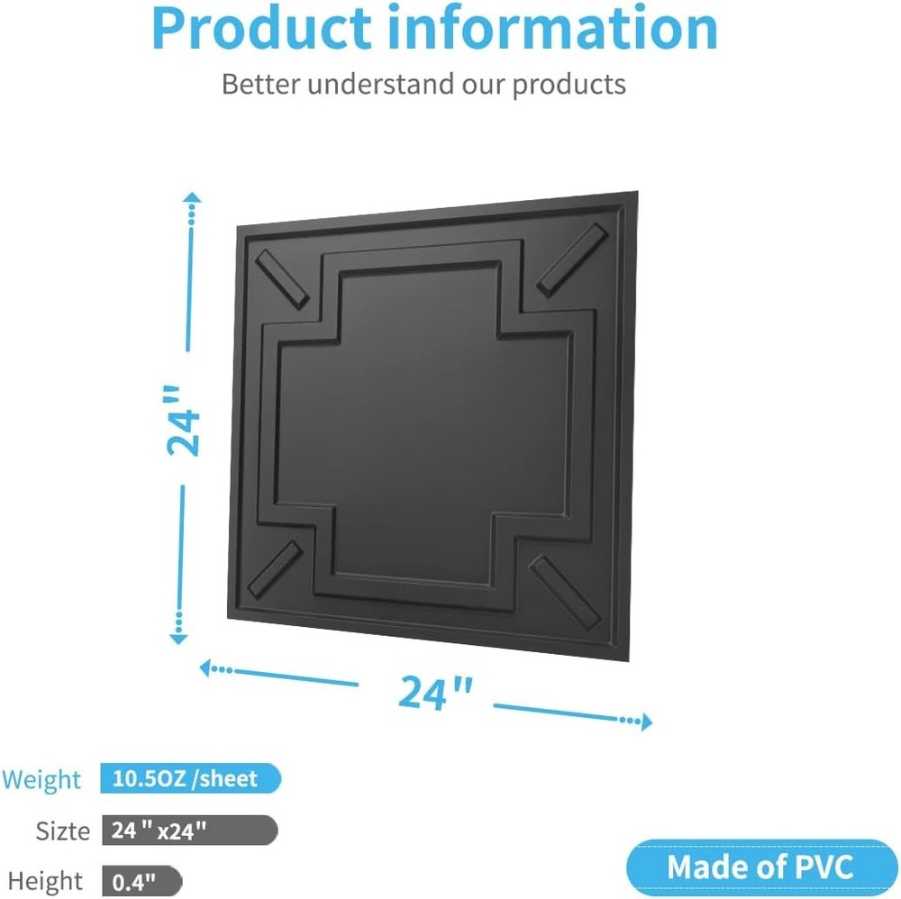 About this item INSTALLATION - Easily lay into a standard 15/16" T-bar drop ceiling grid system or glued over any flat substrates. MATERIAL ADVANTAGE - Made out of lightweight PVC, flexible and will not crack, water and corrosion resistant for exceptional durability, safe and fully recyclable. PACKING QUANTITY - Contains 12 tiles of size 24"L x 24"W, covering 48 sq.ft. CONSTRUCTION - Thin and lightweight, easy to work with, paintable, can be cut with a snip, scissors, or utility knife for quick and easy installation. MULTIPURPOSE - These elegant stylish 3D designs are excellent for remodeling or new construction for ceiling or wall decoration. Size: 24"L x 24"W.