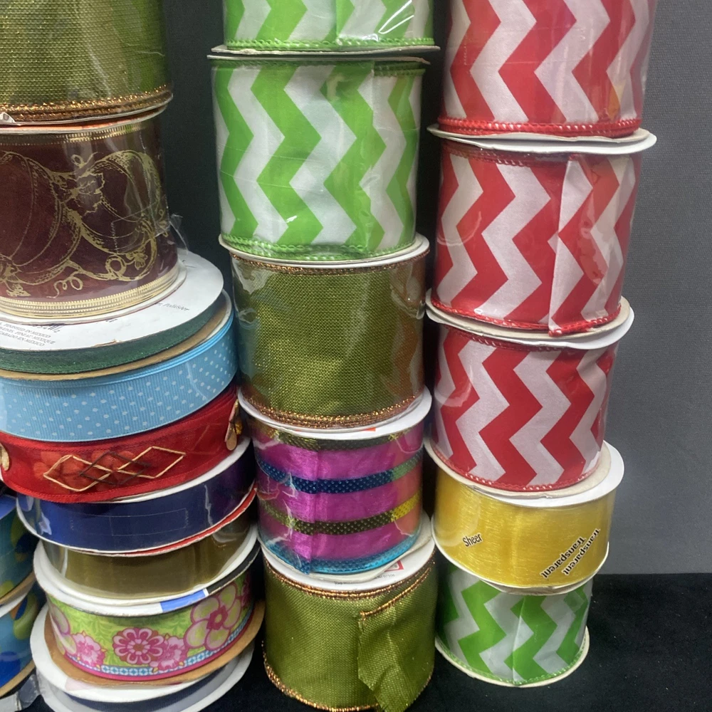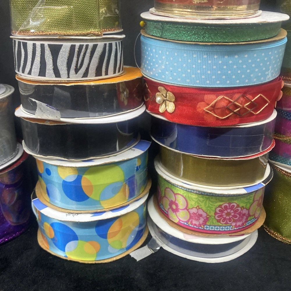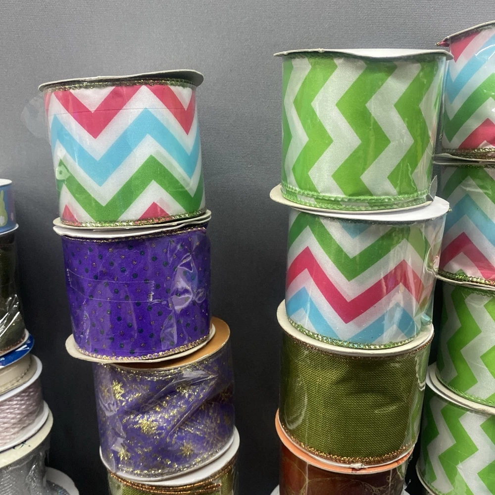 This lot of 60 decorative mesh pieces in various colors and sizes is perfect for crafting projects. The multicolor mesh is ideal for adding a festive touch to your creations. Made of mesh material, these pieces are versatile and can be used in a variety of ways. The assorted brands ensures quality, and the lot includes pieces from China in a style that is suitable for a range of crafting needs. Whether you're looking to add some sparkle to your crafts or create unique designs, this lot of mesh is sure to inspire your creativity. Most rolls are full Some rolls have been used and retaped. Great variety!