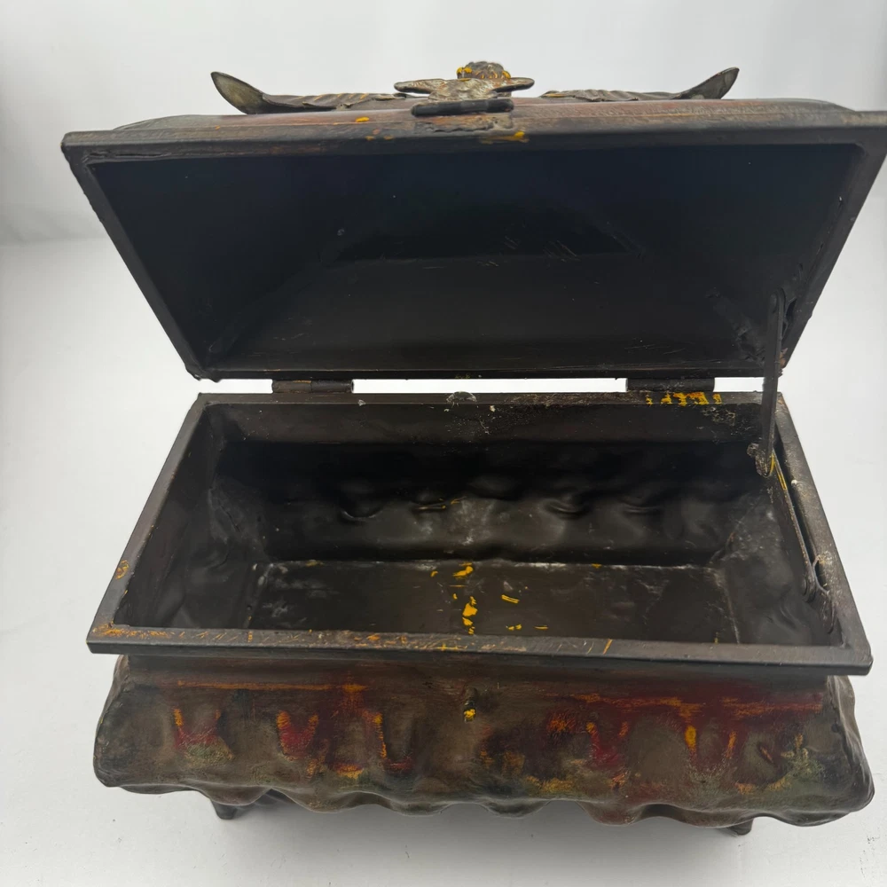 Decorative Metal Hinged Trinket Box Jewelry Storage Keepsake. Pre-owned item in good condition, has some wear as you'd expect from a used item. N oticed some slight imperfections due to use and age. Great home decor. Please use the zoom feature to determine shape and condition, check all pictures and measurements carefully for detailed viewing as they are part of the description and help you with your purchase. I invite you to always check my new listings, buy with confidence. Smoke free home. Thank you, have a wonderful day!! MTL - 5