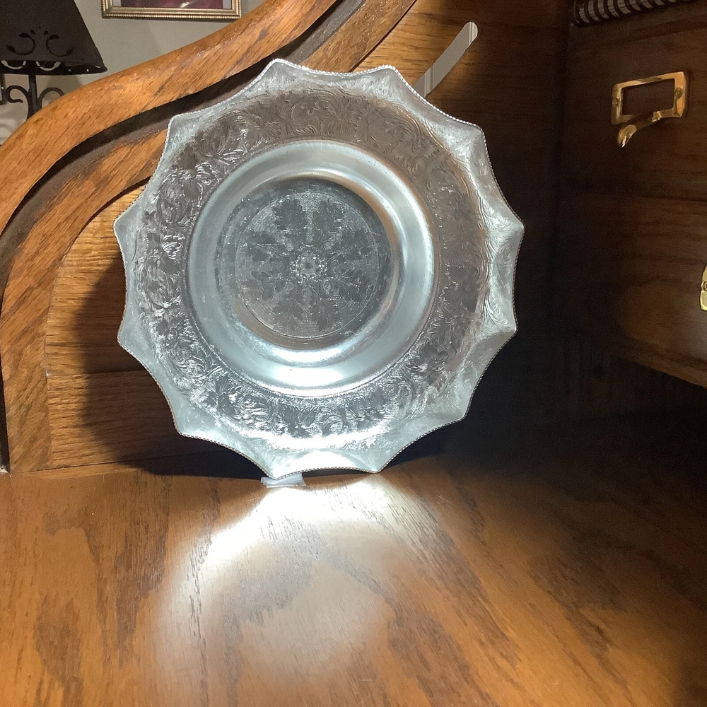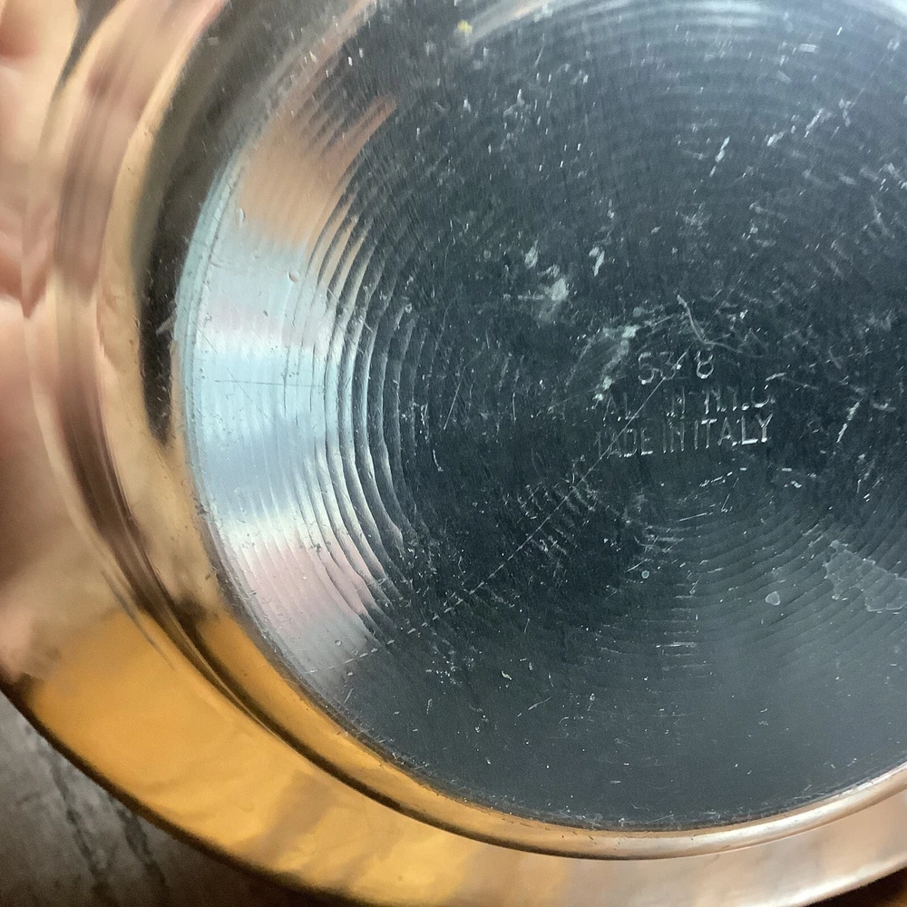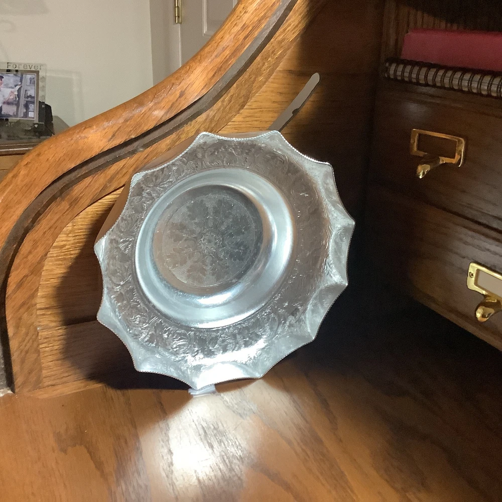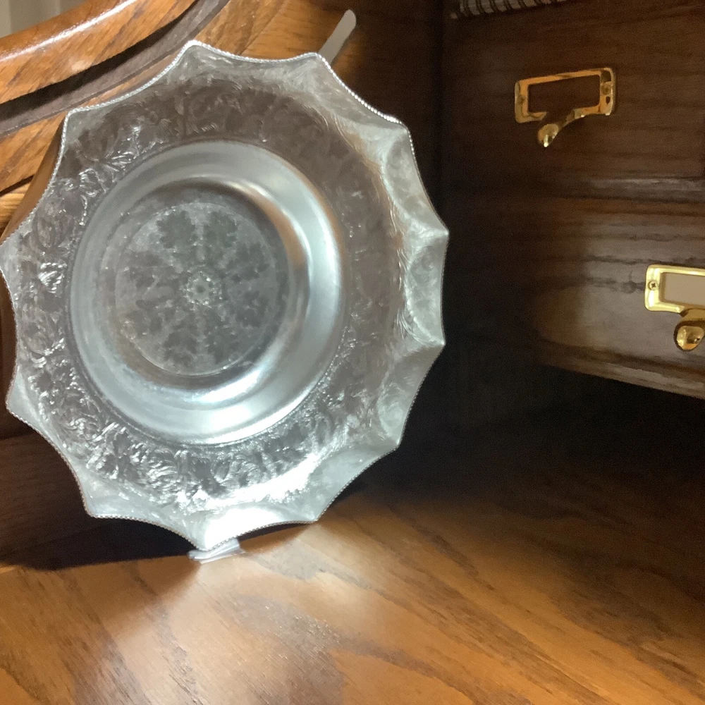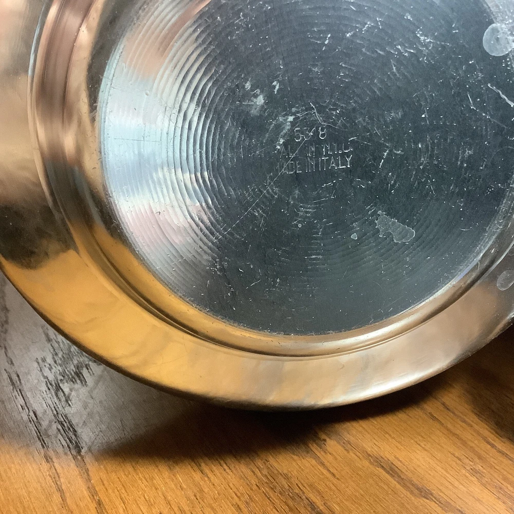 Add a touch of vintage charm to your collection with this decorative Italian aluminum bowl. The scalloped design and silver tone give it a unique and elegant look that is sure to catch the eye. Handmade in Kalian, NYC, this bowl is a true piece of art that is perfect for any collector of metalware. The bowl is made of high-quality aluminum and has been expertly crafted to ensure its durability.