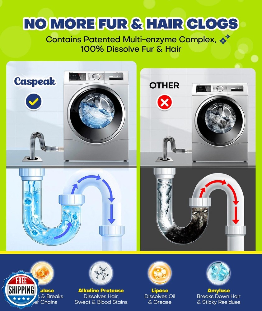 Deep Cleaning Washing Machine Cleaner Tablets, No More Odor and Pet Fur Washing Machine Cleaning Tablets, Washer Cleaner For HE Top Front Load, Septic Safe, 24 Counts/1 Year Supply Features POWERFUL ActivePLUS FORMULA, RENEWS YOUR WASHER - The all-new, upgraded Caspeak ActivePLUS formula with 2X active ingredients, delivers deep-cleaning strength that tackles what you can’t see! From grease and limescale to sweat, detergent residue, and pet fur—our washing machine cleaner uses targeted ingredients to break down every type of buildup. Deep clean, fresh start—just Caspeak washer cleaner. WE DON’T HIDE ODORS, WE WIPE THEM OUT- Caspeak washer machine cleaner tablets use a powerful “ODOR-LOCK” technology, capture and destroy odors at the molecular level — and eliminate them down the drain for good! With a fresh, light scent and minimal fragrance, our washer cleaner tablets leave your washer truly fresh — no lingering awful smells like others. Feel the powerful odor removal in just 1 use! PESKY FUR? LET OUR ENZYME FORMULA HANDLE IT - Caspeak pet hair dissolver for washing machine contains patented multi-enzyme complex. It targets fiber chains in pet and human hair, breaking them down and 100% dissolving them. Specially made for pet families, Caspeak laundry cleaner dissolves quickly and leaves no chemical residues behind — safe for both pets and humans. Say goodbye to pet fur clinging to your clothes after every wash! LONGER WASHER LIFE, STARTS WITH A SAFE CHOICE - Don’t let residue buildup ruin your washer! Use our laundry machine cleaner monthly to clean inner parts like the drum, valves, and hose pipes deeply and thoroughly — extends your washer’s life, restores optimal performance, andand saves you costly manual cleaning fees! Unlike others that may harm your washer, our washing machine cleaning tablets is safer, eco-friendly, and septic tank-safe! YOUR SMILE, OUR COMMITMENT - Caspeak top front load washing machine cleaner is designed to work both front and top load washers including HE. Please comfirm it's empty inside the washer before use. We recommend monthly dosage, 1-2 descaler each time (adjust according to your needs. 1 box can be used for 1 year if you take 2 counts 1 time). We stand by our products with a hassle-free after-sale service. If you’re not satisfied, you can request a free replacement or refund, no returns needed. Shipping Free & Fast Shipping: We offer free shipping to most of the USA with a normal delivery time of 3-7 days. However, due to the current situation, additional delivery time (up to 3 weeks) may be required for some items. Alternative Carriers: We may use alternative carriers (e.g., USPS, FedEx, UPS) to ensure your package arrives safely and on time. Due to the use of multiple carriers, we are unable to provide a tracking number automatically. Handling Time: Orders are processed and shipped within 1-2 business days of receiving cleared payment. Shipping Restrictions: Shipping to Alaska, Hawaii, Puerto Rico, Guam, and other US territories may incur shipping charges or delivery restrictions. Please contact us before ordering, or your order can be refunded/cancelled. State Restrictions: Certain items may not be shipped to California due to state regulations. Contact for Tracking Updates: If you require tracking updates or have any concerns about the delivery of your order, please feel free to contact us, and we will be happy to assist you. Return Policy 30-Day Hassle-Free Returns: If you are not completely satisfied with your purchase, you can return the item for free within 30 days of receiving it for a full refund or exchange. Easy Return Process: Contact us, and we will provide you with a prepaid return shipping label and detailed instructions. No Restocking Fee: There are no restocking fees for returns. However, the buyer is responsible for return shipping costs if the return is not due to a seller"s error. Refund Processing: Refunds will be processed within 1 business day of receiving the returned item in its original condition. Feedback Your feedback is extremely important to us. We strive to provide the best products and customer service possible. If you are satisfied with your purchase, please take a moment to leave us a positive review. If you have any concerns or issues with your order, please contact us before leaving negative feedback. We are committed to resolving any problems and ensuring your satisfaction. Contact Us If you have any questions or concerns, please feel free to reach out to our customer support team. You can contact us through the eBay messaging system. We are available Monday to Friday, 9:00 am to 5:00 pm EST, and we will do our best to respond to your inquiry within 24 hours. Thank you for supporting our small family business!