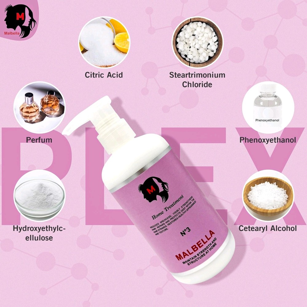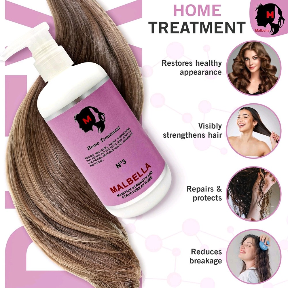 Hair Mask - Deep Conditioning Hair Mask - Bond Repair Treatment - Hydrating - Intensive Hydration - Repairing - 15.2 oz 🌸 Malbella Deep Hydration Hair Mask – This rich and nourishing hair mask for dry hair deeply hydrates and restores softness. One of the best hair masks to repair and strengthen, perfect as a hair mask for damaged hair. 🌸Malbella Hair Mask – Restructures and deeply hydrates the hair fiber. It acts as a treatment for dry and damaged hair and a moisturizing hair mask, leaving your mane strong and soft. Try this hair moisturizer for intense repair. 🌸Transform your hair with deep hydration. This hair mask for color treated hair protects vibrancy, works as a damaged hair treatment, a hair repair mask to restore fibers, and a dry hair mask for nourishment. 🌸Strengthen and repair with every use. Our hairmask revitalizes and restores. Acts as a hair hydration treatment for deep moisture, a hair masque for protection, and a repair hair mask for stronger hair. 🌸More than conditioning—true repair. Our deep moisture hair mask restores vitality, while the deep conditioner hair mask nourishes deeply. Use the hydrating hair mask for dry damaged hair and moisture hair mask for lasting hydration. ADDITIONAL DETAILS : Transform Your Hair with Professional-Grade Hydration and Repair Give your hair the care it deserves with our deep conditioner, a salon-quality formula designed to restore strength, shine, and smoothness. This advanced hair treatment penetrates deeply to repair damaged hair bonds from the inside out, making it perfect for over-processed, dry, and brittle strands. Packaged in a generous 15.2 oz jar, this hydrating hair mask is ideal for multiple treatments per week, especially if your hair needs extra nourishment. Apply it to damp hair and let it work its magic for 10 to 20 minutes—no need to wash your hair beforehand! Whether used once or several times a week, this intensive hair repair solution delivers visible results, leaving your hair healthier and more resilient. Designed for all hair types, our hair treatment masks combat frizz and dehydration, making it an essential hair mask for frizzy hair. Say goodbye to dry, lifeless strands and hello to deep moisture with this moisturizing hair mask. Perfect as a mask for hair in need of a boost, this formula works wonders on color-treated and processed hair, making it the ultimate hair mask for bleached hair.Experience smoother, stronger, and healthier-looking hair with every use! IMPORTANT INFORMATION : Safety Information For external use only INGREDIENTS: Perfum. Citric Acid. Aqua. Cetearyl Alcohol. Amodimethicone and Tridecenth-12