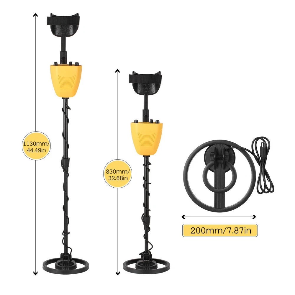 Description: Deep Sensitive Waterproof Metal Detectors Coin Treasure Hunter Finder Outdoor With this metal detector, you can hunt for coins, relics, jewelry, gold, and silver just about anywhere, very versatile and easy to use. Features: ALL Metal & DISC Two Operation Modes: with ALL Metal mode for all different types of metal with auto ground balance and high sensitivity, and DISC mode to discriminate what kinds of metal is being detected. Adjustable Stem: lets you adjust the detector's length for comfortable use. View Meter and Pointer: display interface is clearer and faster to read, the meter pointer swings to the right if metal is found. User-friendly Design: with handle and elbow support, which can let you carry and operate your detector comfortably, to make sure this detector is easy for people of different height and age. Practical & Versatile: suitable for finding and testing metal objects, gold and silver jewelry, coins, relics, etc. Whether you are a budding treasure hunter or an experienced metal detecting hobbyist, you can easily use it. Easy to Use: audio alert and pointer indicate the detection of metal. Volume Adjustable: with the volume control knob, you can adjust the output volume of the loud speaker or headphone. Specifications: Material: Metal Operation Mode: All metal and DISC Sensitivity: Max. depth > 180mm for a U.S quarter in all metal mode Detect Objects: Metal (iron nail, iron covering, aluminum loop, small aluminum product, coins, gold, bronze, silver) Operating Frequency: 5.69KHz Power Supply: 2 * 9V battery (NOT included) Operating Current: Standby 10mA, Max. 70mA Detection Indication: Mechanical pointer mode, audio mode Sensitivity: Adjustable Volume: Adjustable Adjustable Stem: Max. length: 1080mm / 42.52in, Min. length: 780mm / 30.71in Waterproof Search Coil Diameter: 200mm / 7.87in Speaker or Earphone Jack: 1.2" Application: Testing metal foreign body of raw materials, fuel and food, detection of underground pipeline & line, archaeology, exploration, found buried treasures of gold, silver and metal artifacts, the acquisition of scrap metal industry, customs and safety inspection, detection of interpol search, checking metal foreign bodies in expressage and luggage. Package Size: 54 * 22 * 11cm / 21.26 * 8.66 * 4.33in Packing List: 1 * Metal Detector Main Unit 1 * Armrest 2 * Connecting Rod 1 * Search Coil 1 * Manual (English) Note: 1. The search coil is waterproof, but the control housing is not waterproof. On Nov 28, 2025 at 01:35:34 PST, seller added the following information: