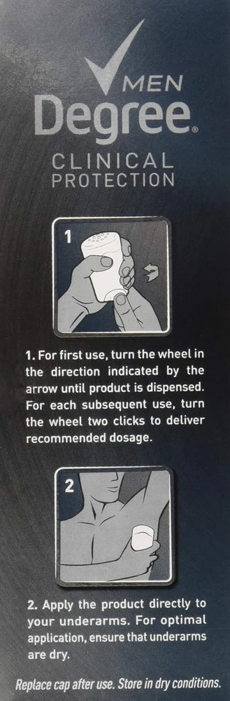 Product Description Degree Men, Clinical Protection, Antiperspirant Deodorant, Soft Solid, Clean, 1.7 Ounce (Pack Of 6) Degree Clinical Protection Long Lasting Antiperspirant Deodorant Stick, Clean, Degree Men Clinical Protection Clean Antiperspirant Deodorant delivers prescription-strength wetness protection with 72-hour sweat and odor control to keep you feeling dry and fresh. Our breakthrough motionsense technology works in sync with your body, all day long. This Antiperspirant deodorant releases a clean, masculine scent every time you move. The powerful, prescription-strength Antiperspirant deodorant responds when you need it most, so you can stay confident without having to worry about slowing down. PRESCRIPTION-STRENGTH PROTECTION: Active lives need Degree Men Clinical Protection Clean Antiperspirant Deodorant. This Antiperspirant for men delivers prescription-strength wetness protection MOTIONSENSE® TECHNOLOGY: Our breakthrough MotionSense® technology works in sync with your body all day long. This deodorant for men releases a subtle burst of fragrance every time you move READY FOR WHAT'S NEXT: Take on the day with Degree Men Clinical Protection Clean Antiperspirant Deodorant stick. Simply twist, glide, and move UNSTOPPABLE FRESHNESS: Stay fresh, longer with this Antiperspirant. Degree Men Clinical Protection Clean Antiperspirant Deodorant features a clean, masculine scent to keep you feeling energized RECYCLE WITH DEGREE: As well as increasing our use of reusable materials, we're making it easier for you to recycle our Antiperspirant and dry spray packaging Clean Clinical Antiperspirant Deodorant: Provides 24-hour protection against sweat and odor Neutral Scent: Unisex fragrance won't overpower you or your partner Ingredients Active ingredient: Aluminum Zirconium Tetrachlorohydrex GLY (20%); Inactive ingredients: Cyclopentasiloxane, dimethicone, paraffin, microcrystalline wax, fragrance (parfum), silica, caprylic/capric triglyceride, sodium starch octenylsuccinate, dimethicone crosspolymer, hydrated silica, maltodextrin, gelatin crosspolymer, hydrolyzed corn starch octenylsuccinate, cellulose gum, and BHT