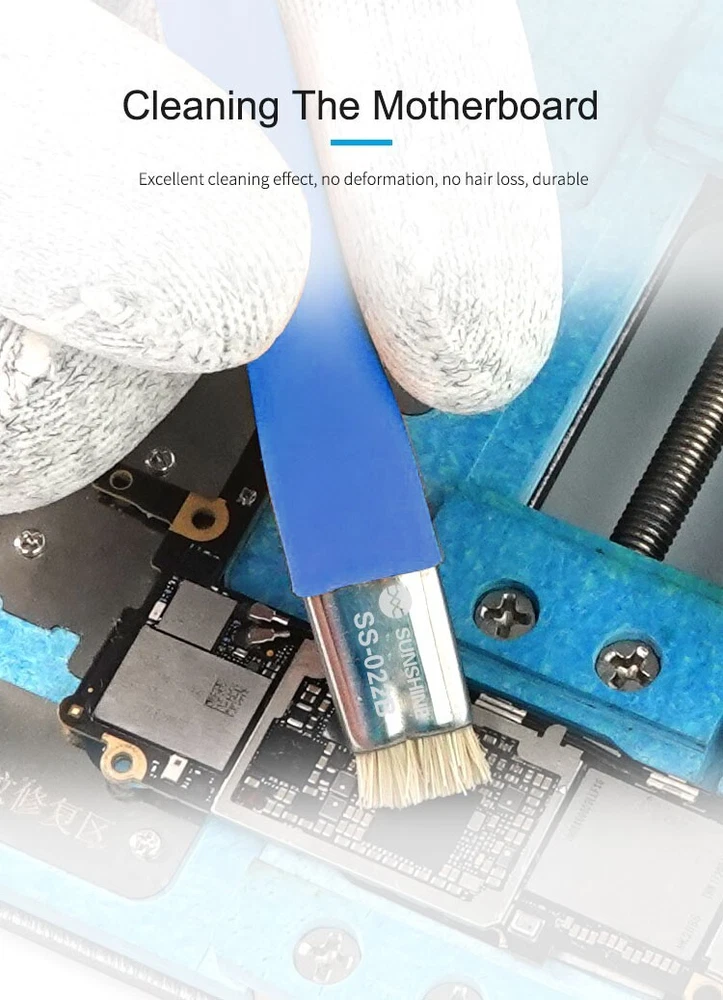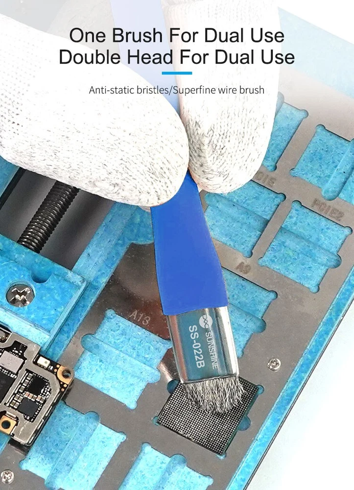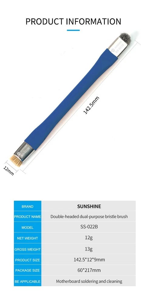 Brush for glue removal, cleaning, etc., can be used for motherboard glue removal, etc.; SS-022A single head feather brush SS-022 double head, feather brush SS-022B, double heads, one feather, one thin steel wire On Feb 8, 2025 at 02:56:50 PST, seller added the following information: