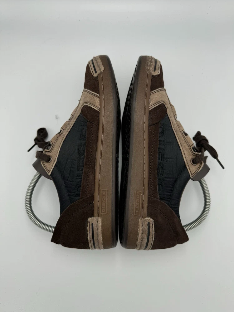 Elevate your style and performance with these Deisel sneakers for women in size 8. Perfect for boxing or any other athletic activity, these brown sneakers are designed to provide comfort and support. With the iconic Deisel branding, these shoes are a must-have for any sneakerhead. Whether you're hitting the gym or running errands, these sneakers are versatile enough to match any outfit. Don't miss out on the opportunity to add these high-performance shoes to your collection. IF YOU GUYS HAVE ANY QUESTION ABOUT THE ITEM FEEL FREE TO SEND ME A MESSAGE SOLD AS IS PLEASE SEE ALL THE PICTURES BEFORE BUYING TO SEE CONDITION WHAT YOU SEE IS WHAT YOU GET DO NOT HESITATE TO SEND A REASONABLE OFFER ORDERS WILL BE SHIPPED OUT IN A WATER PROOF POLY MAILER THANK YOU FOR YOUR TIME HAVE A GOOD ONE