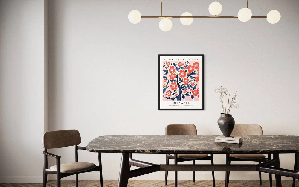 Delaware Flower Market Poster Art Print Botanical Collection For Bedroom Wall Art Material: Premium luster photo paper Print type: Inkjet printing One side printed + The finish provides the highest possible resolution and color saturation + Lasts up to 200 years in color and 400 years in black-and-white + Printed on high-quality resin-coated photo base paper medium + Posters can be hung with double-sided tape, tacks, or framed + Hand washing with a gentle cry cloth is recommended for extended durability I will hand select the best choice of paper for your chosen design to ensure top quality results for a beautiful, bright and luxurious print. All prints are sealed in cellophane slips for protection during transportation, and are shipped in a protective cardboard envelope.